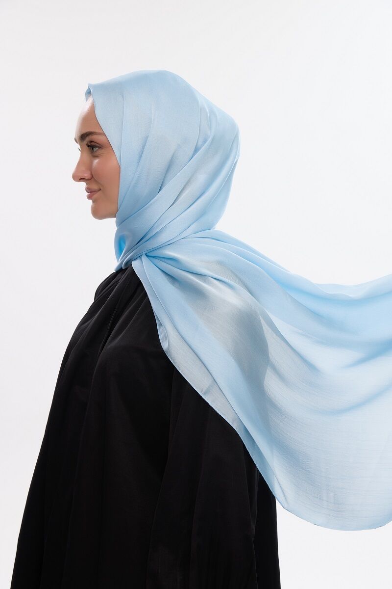 Camellia Scarfs ile şıklığınızı tamamlamak için tasarlanan bu özel İdol Saten Janjan Şal - Açık Mavi renk, zarafetin ve konforun mükemmel bir birleşimini sunar.