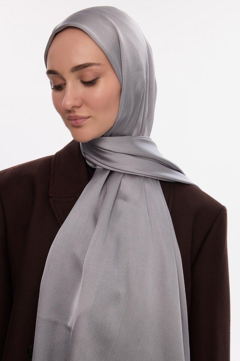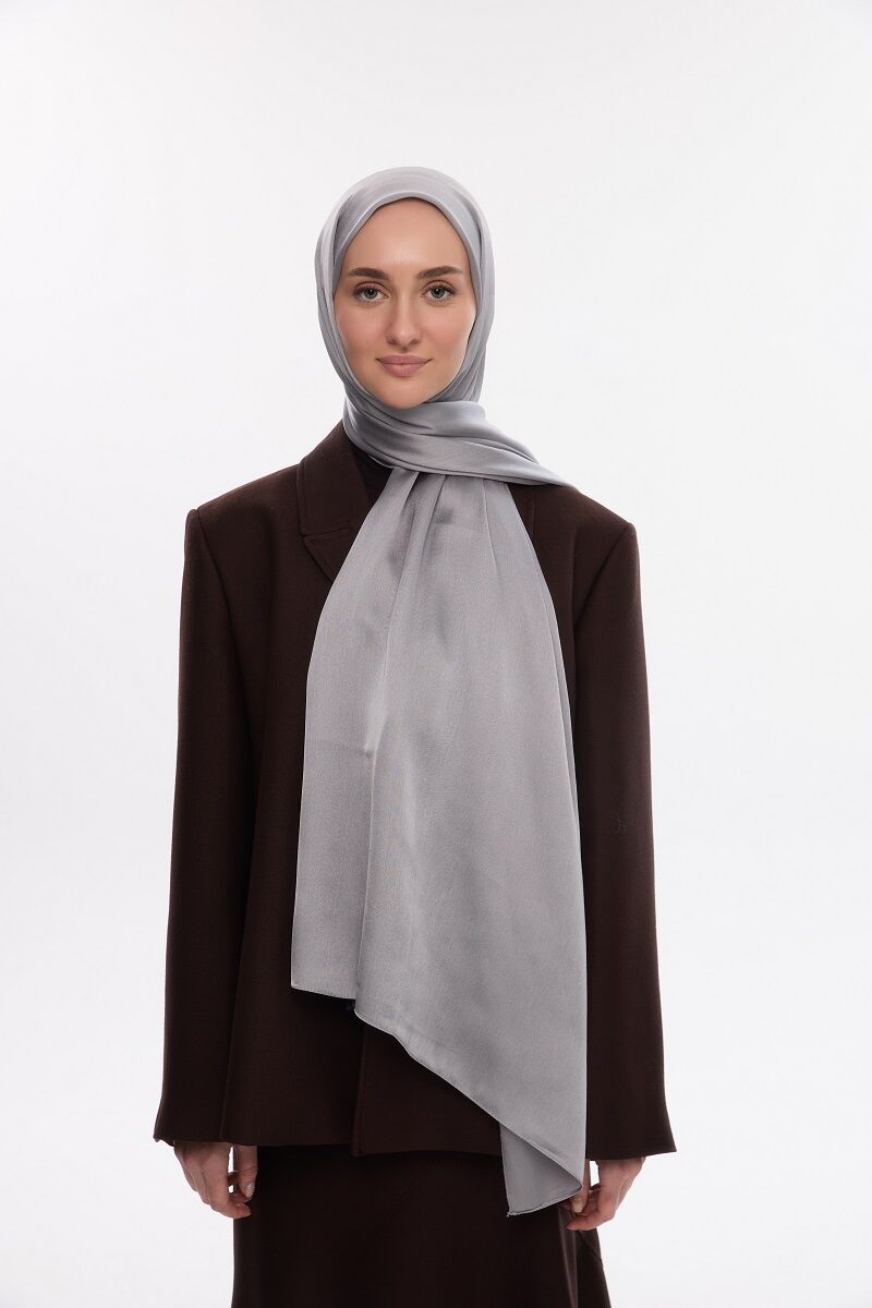 Camellia Scarfs ile şıklığınızı tamamlamak için tasarlanan bu özel İdol Saten Janjan Şal - Gümüş renk, zarafetin ve konforun mükemmel bir birleşimini sunar.