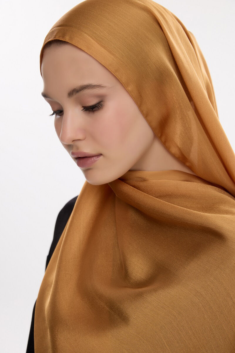 Camellia Scarfs ile şıklığınızı tamamlamak için tasarlanan bu özel İdol Saten Janjan Şal - Hardal renk, zarafetin ve konforun mükemmel bir birleşimini sunar.