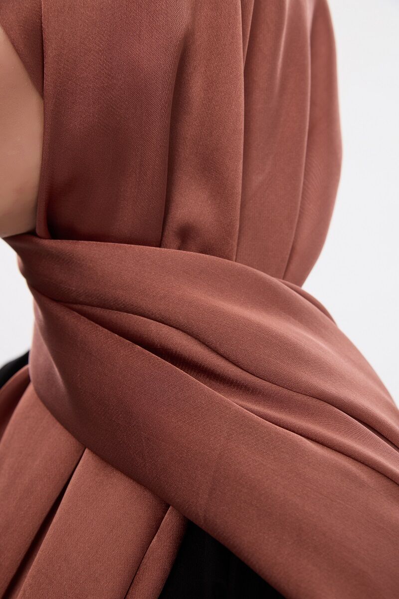 Camellia Scarfs ile şıklığınızı tamamlamak için tasarlanan bu özel İdol Saten Janjan Şal - Karamel renk, zarafetin ve konforun mükemmel bir birleşimini sunar.