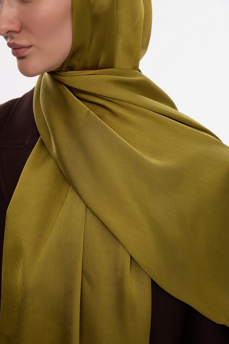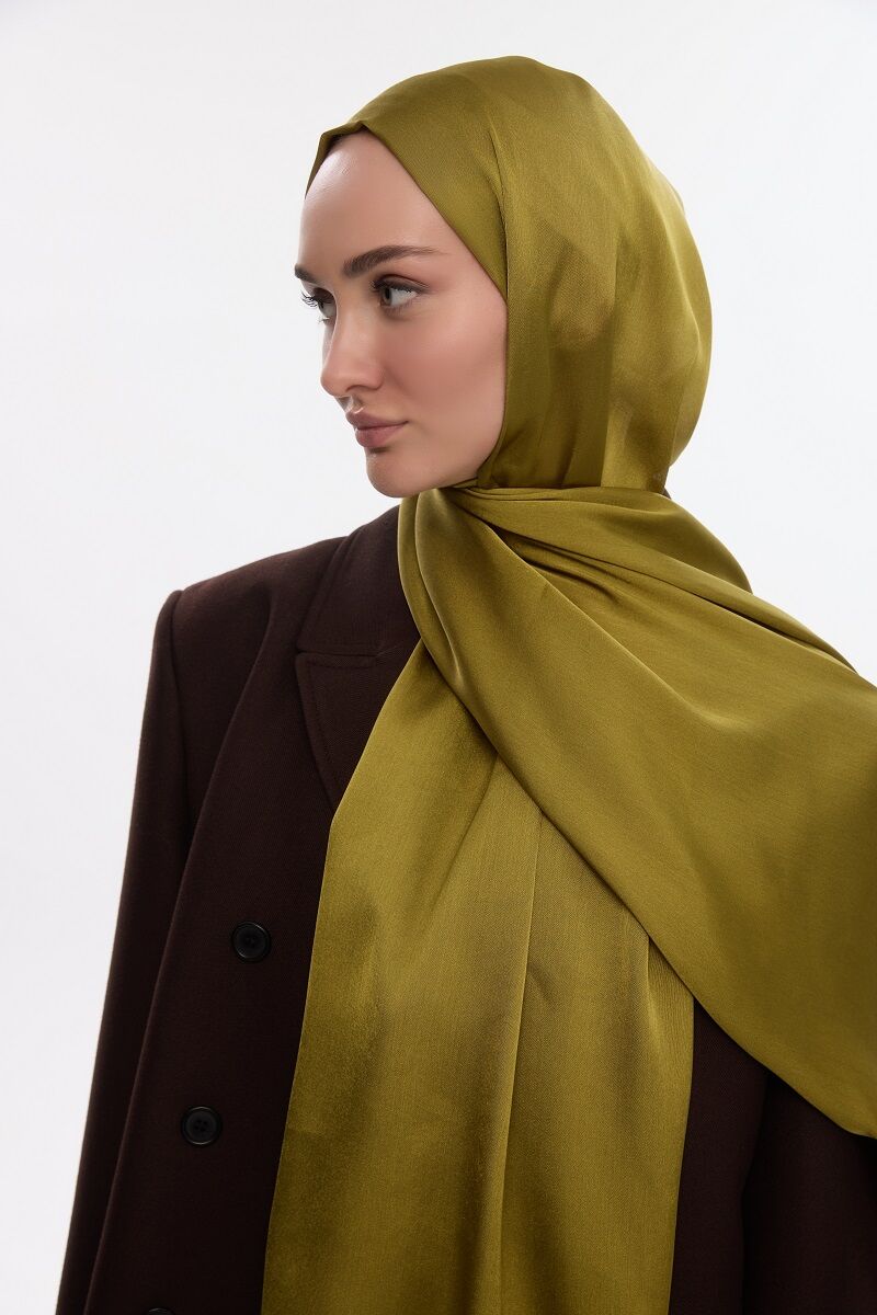 Camellia Scarfs ile şıklığınızı tamamlamak için tasarlanan bu özel İdol Saten Janjan Şal - Yağ Yeşili renk, zarafetin ve konforun mükemmel bir birleşimini sunar.