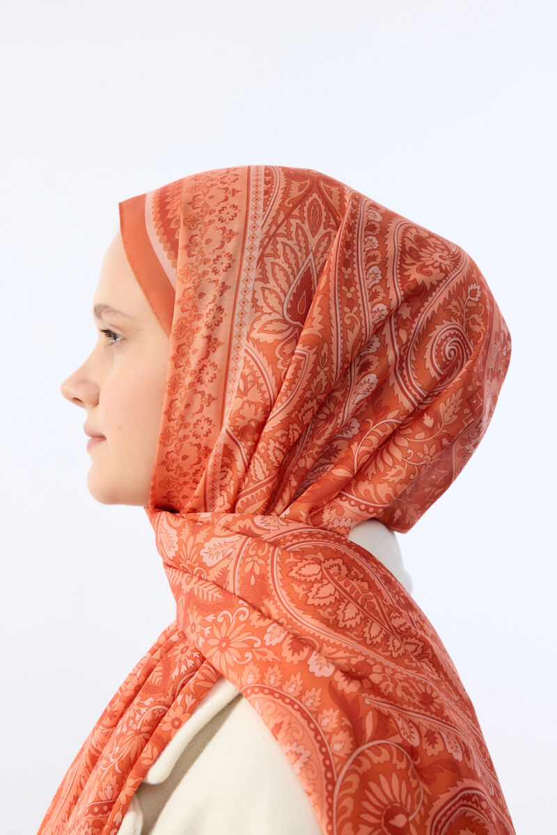 Camellia Scarfs ile şıklığınızı tamamlamak için tasarlanan bu özel Allica Desen Şal - Kiremit renk, zarafetin ve konforun mükemmel bir birleşimini sunar.