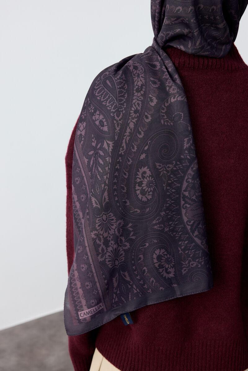 Camellia Scarfs ile şıklığınızı tamamlamak için tasarlanan bu özel Allica Desen Şal - Mürdüm renk, zarafetin ve konforun mükemmel bir birleşimini sunar.