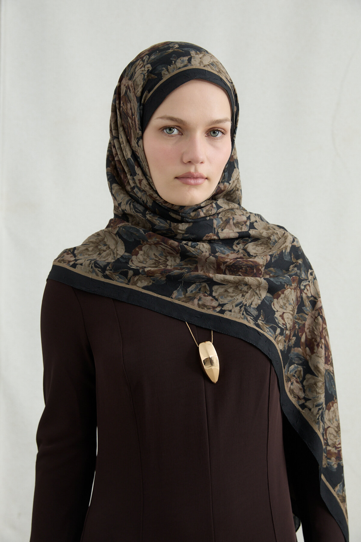 Amber Kraş Şal - Siyah Bej - Camellia Scarfs Amber Kraş Şal - Siyah Bej - Camellia Scarfs (1)
