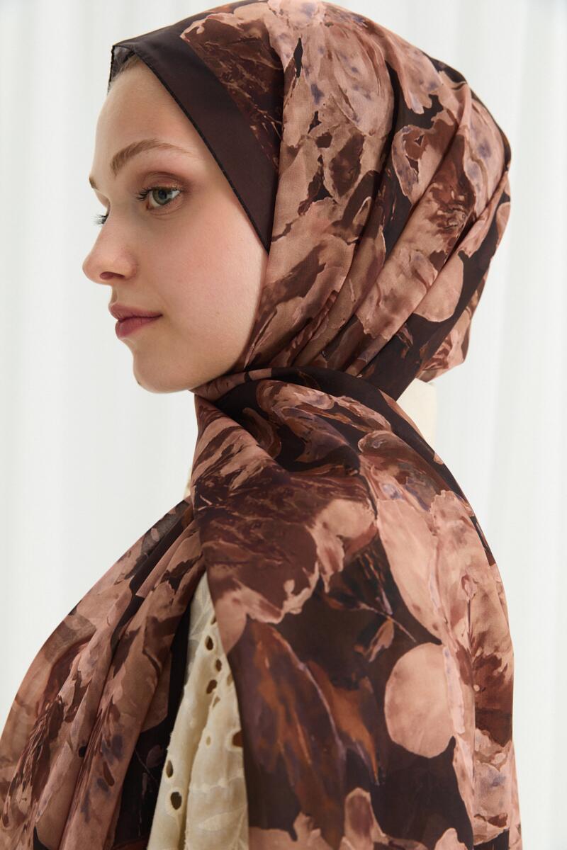 Blom Desen Soft Şal - Kahve - Camellia Scarfs Blom Desen Soft Şal - Kahve - Camellia Scarfs (1)