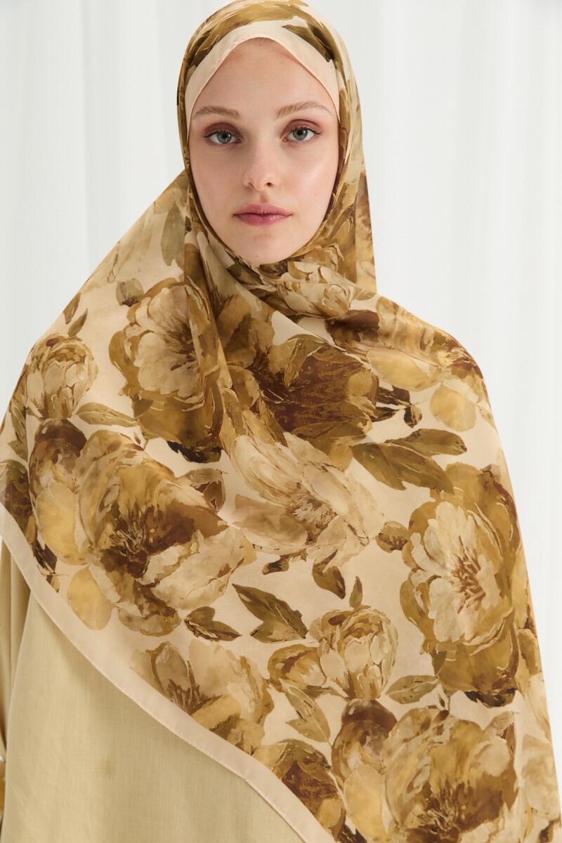 Valeria İpek Krep Şal - Mocha - Camellia Scarfs Valeria İpek Krep Şal - Mocha - Camellia Scarfs (1)