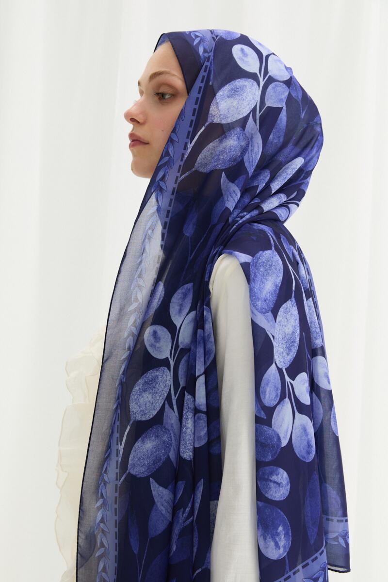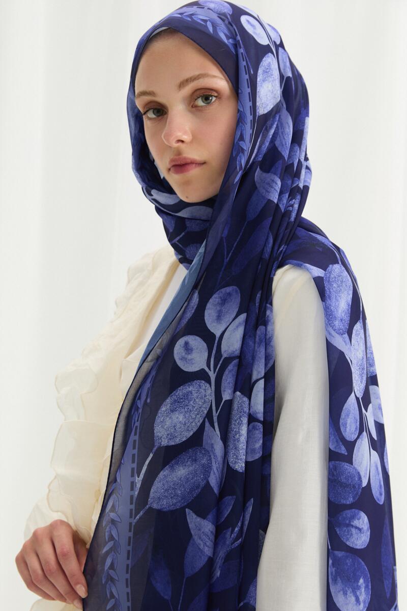 Blom Desen Soft Şal - Lacivert-Haki - Camellia Scarfs Blom Desen Soft Şal - Lacivert-Haki - Camellia Scarfs (1)