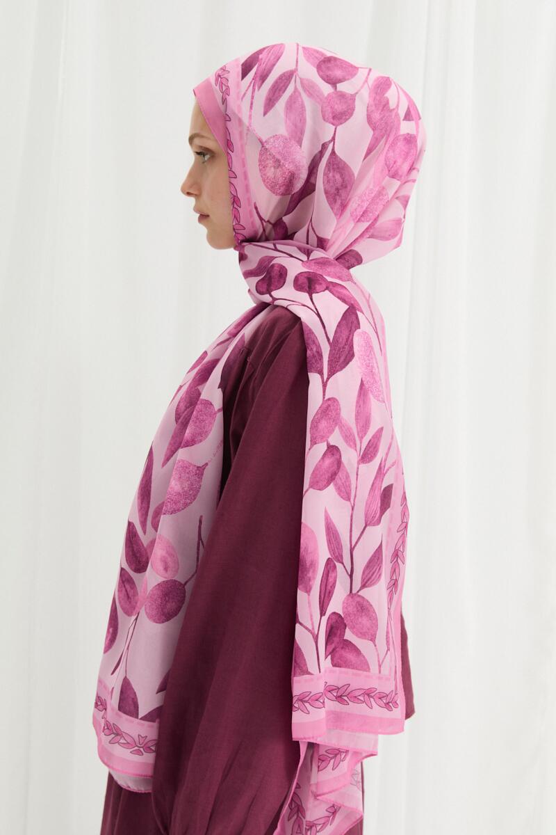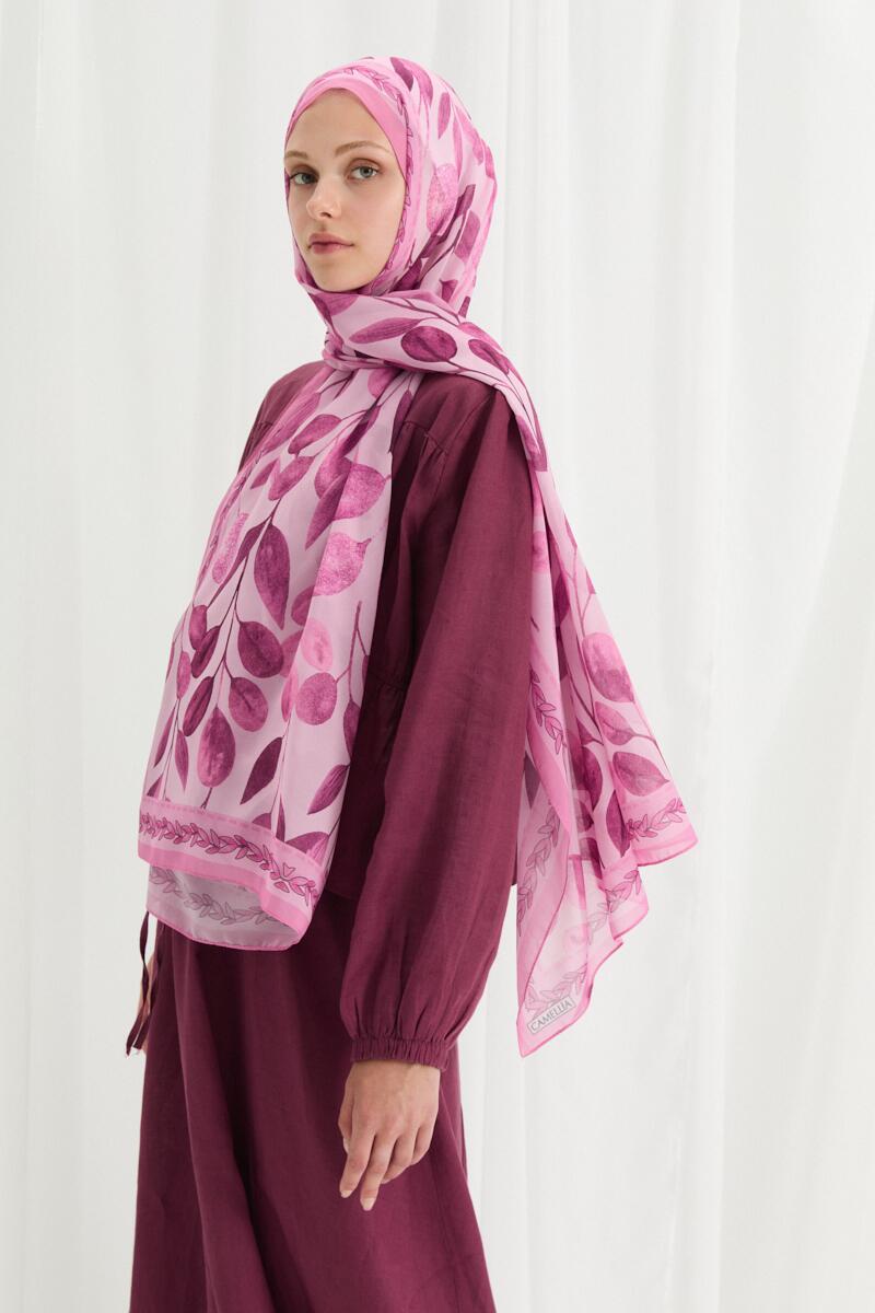 Camellia İpek Krep Şal - Pembe