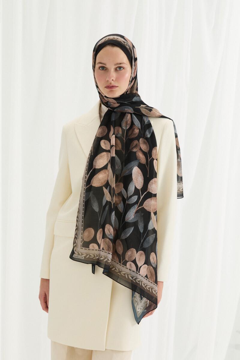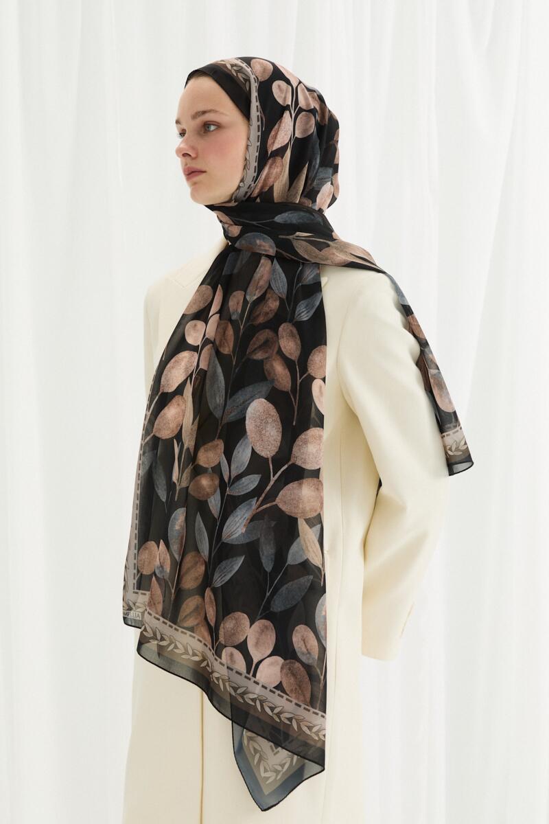 Frosted Bloom Müslin Şal - Siyah Bej - Camellia Scarfs Frosted Bloom Müslin Şal - Siyah Bej - Camellia Scarfs (1)