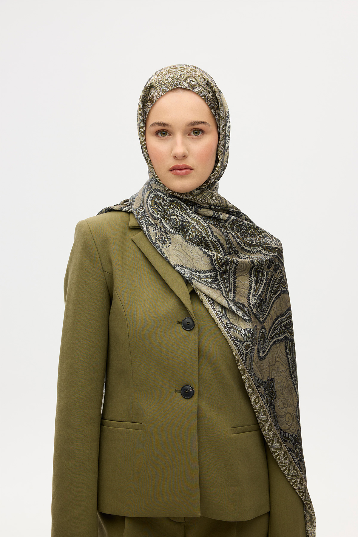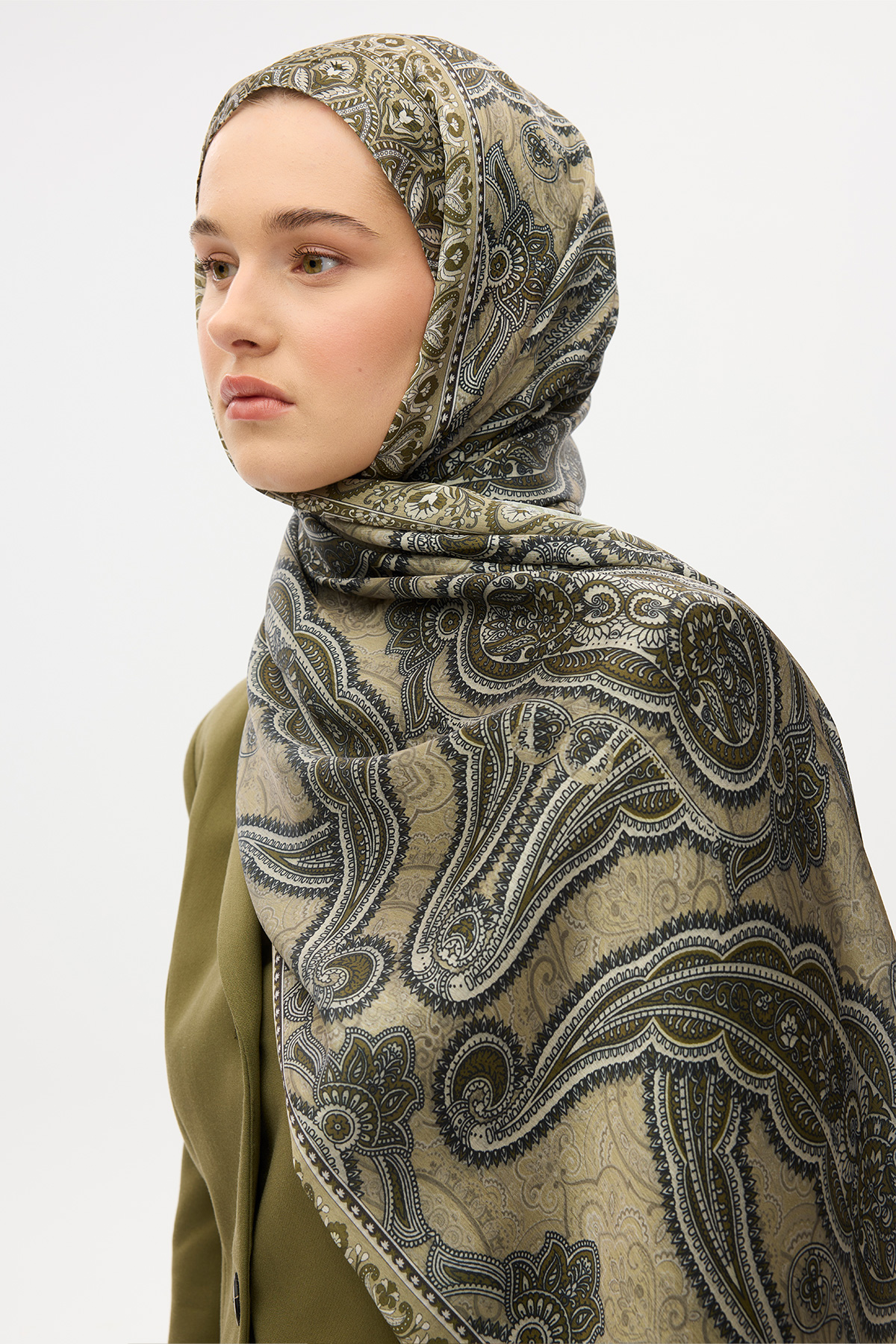 İdol Saten Janjan Şal - Haki - Camellia Scarfs İdol Saten Janjan Şal - Haki - Camellia Scarfs (1)