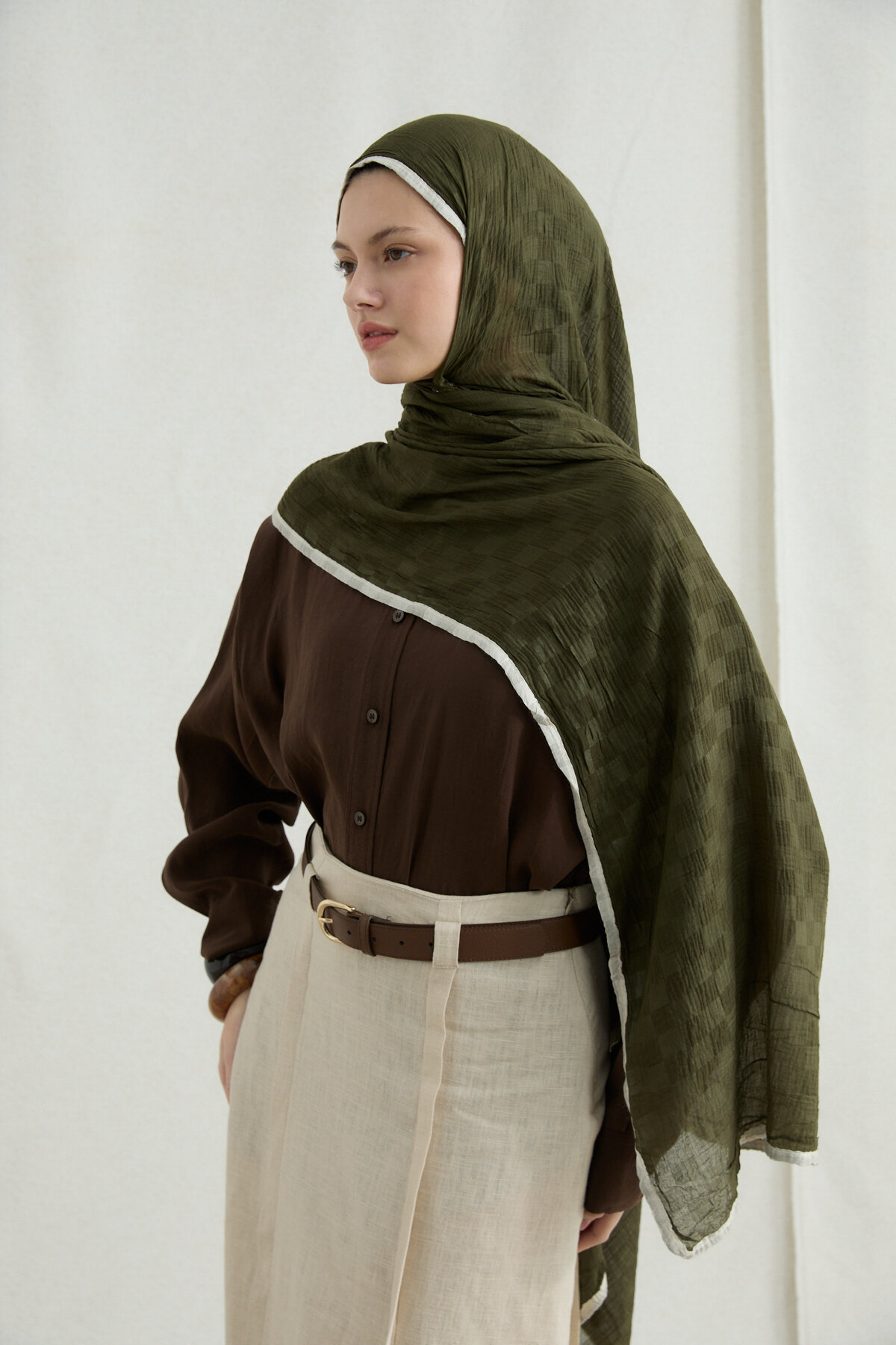 Dama Müslin Şal - Yağ Yeşili - Camellia Scarfs Dama Müslin Şal - Yağ Yeşili - Camellia Scarfs (1)