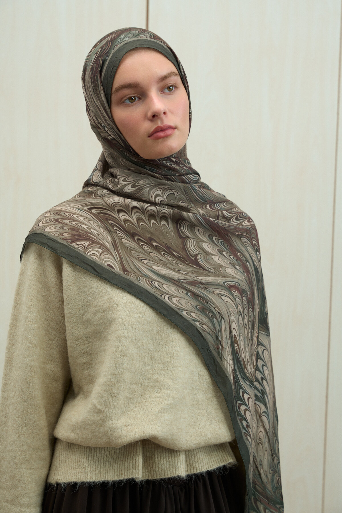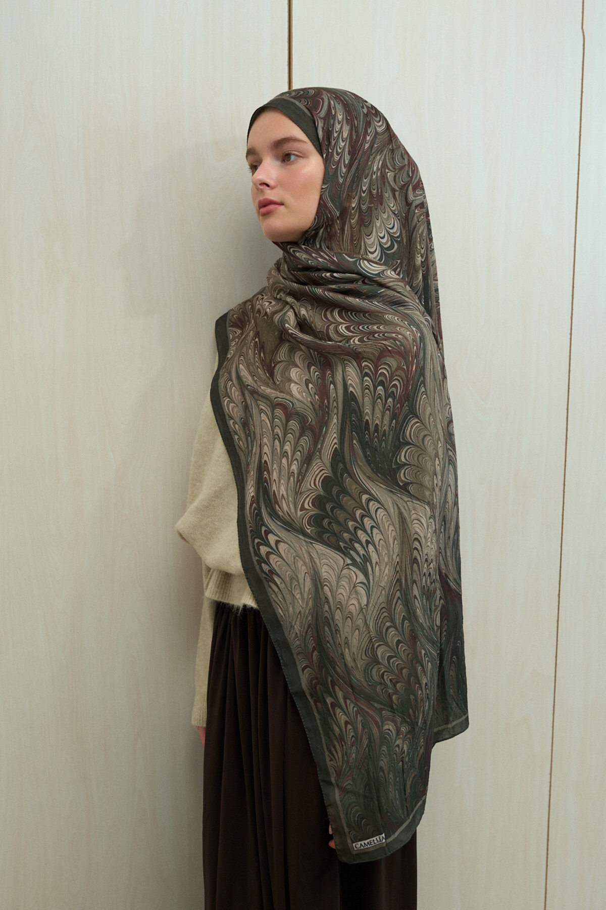 Ebruel Kraş Şal, Kahve Yeşil renginin asaletini kraş dokunun modern ve dinamik yapısıyla birleştiriyor. Kendinden buruşuk özel dokusu sayesinde ekstra hacimli bir görünüm sunan bu model, günün her saatinde formunu koruyan tok duruşuyla stilinize derinlik katar. Kumaş üzerindeki desen yerleşimi, bağlama şekliniz ne olursa olsun görsel bütünlüğü koruyarak her açıdan kusursuz bir şıklık sergilemenize olanak tanır.
