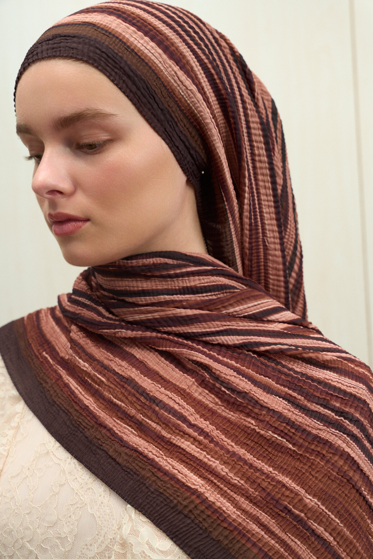 • ECRU DREAMS MÜSLİN ŞAL ile farkını öne çıkar. Doğal müslin dokusuyla sıcak, yumuşak ve nefes alan günlük şallar. Saflık, sadelik ve zarafet teması.