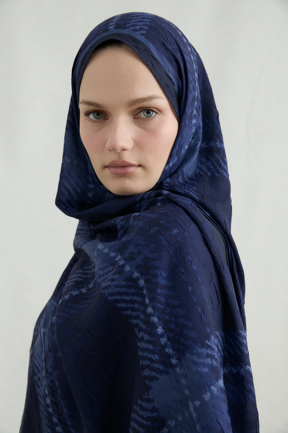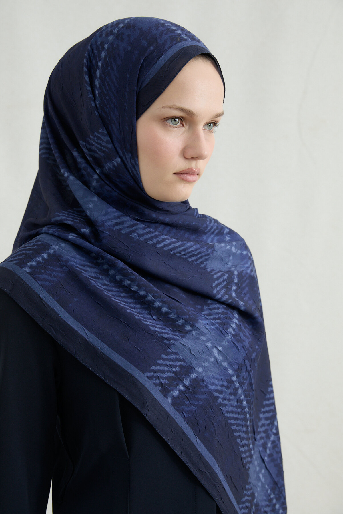 Ekose Kraş Şal koleksiyonumuzun en asil üyelerinden biri olan bu tasarım, Lacivert renginin dinginliğini modern bir dokuyla buluşturuyor. Kraş kumaşın kendinden hacimli ve hafif buruşuk yapısı, her bağlama stilinde dolgun bir görünüm sunarken; desenlerin kumaş üzerindeki dengeli dağılımı sayesinde zarafetiniz her açıdan ön plana çıkar.