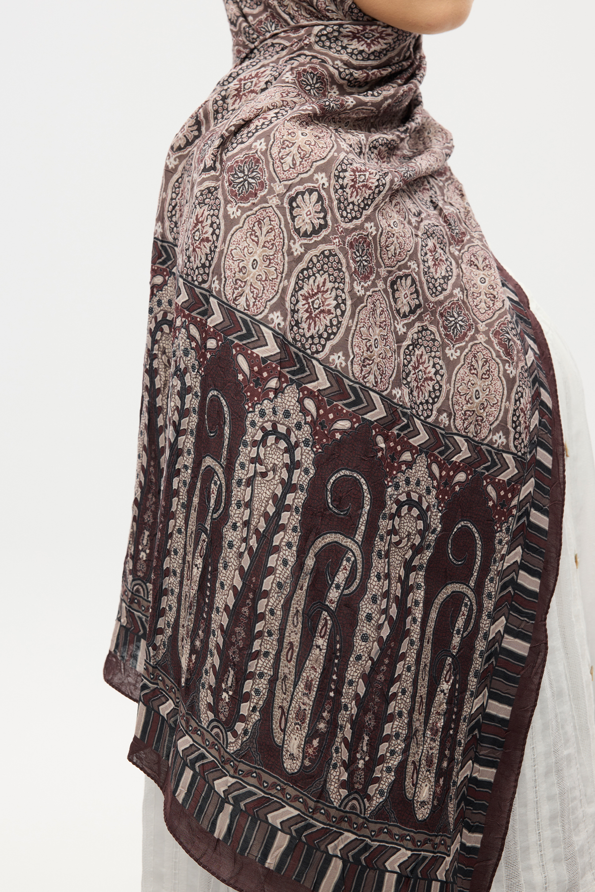 ETHNİC CRASH ŞALile farkını öne çıkar. Vintage görünümüyle, etnik desenlerini ön planda tutan bu özel tasarım. Tarzınıza ütü istemeyen kraş rahatlığı sunar.