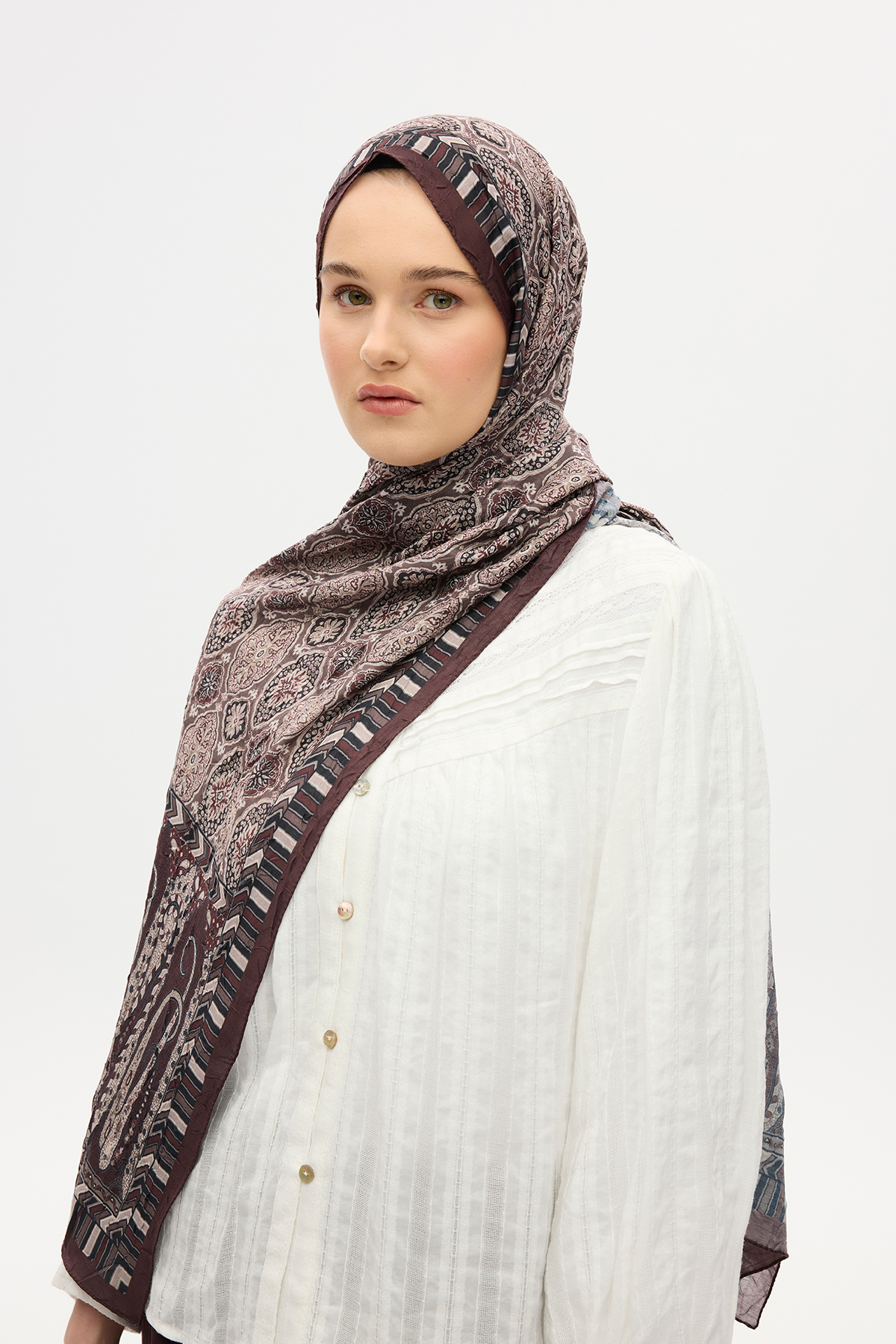 ETHNİC CRASH ŞALile farkını öne çıkar. Vintage görünümüyle, etnik desenlerini ön planda tutan bu özel tasarım. Tarzınıza ütü istemeyen kraş rahatlığı sunar.