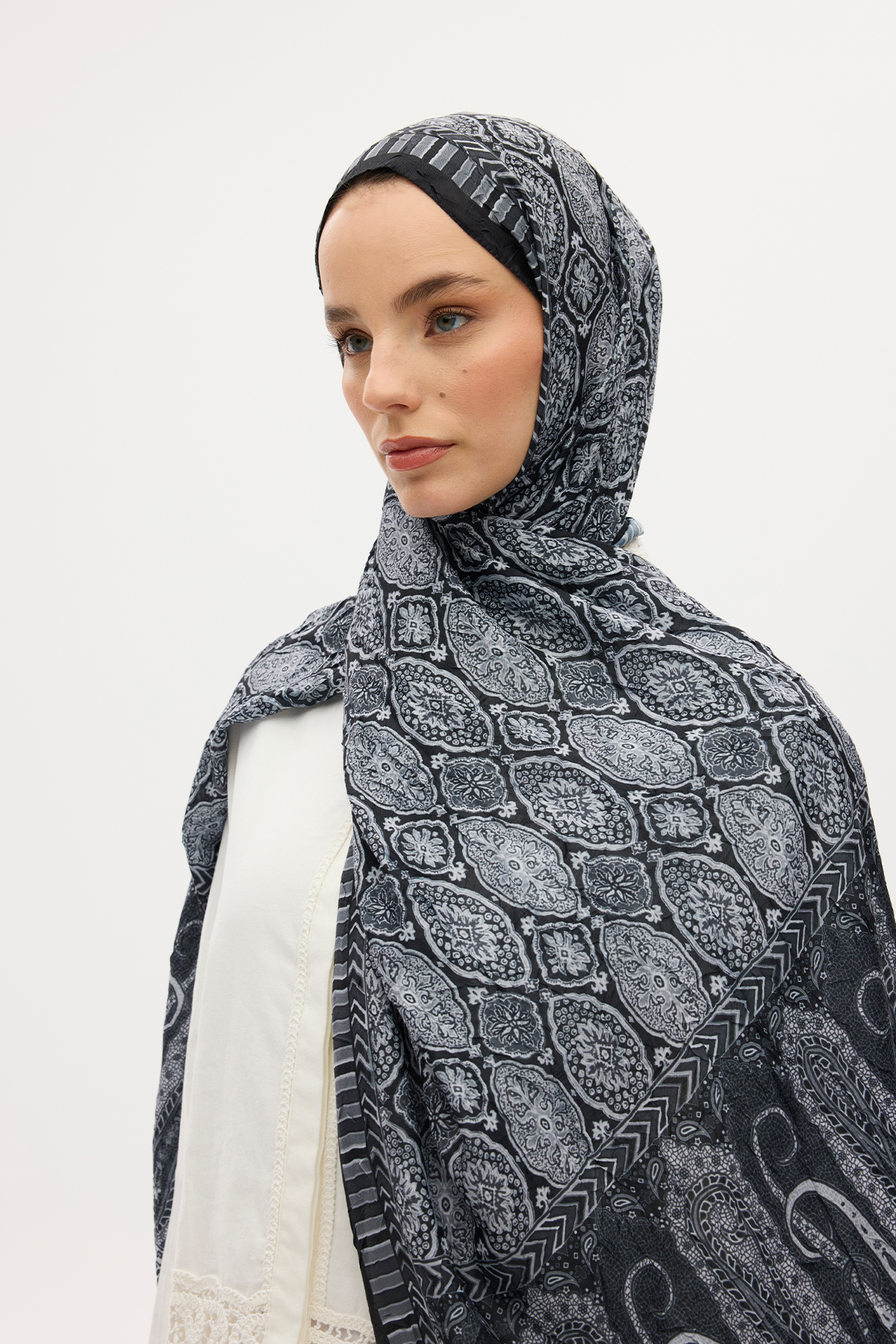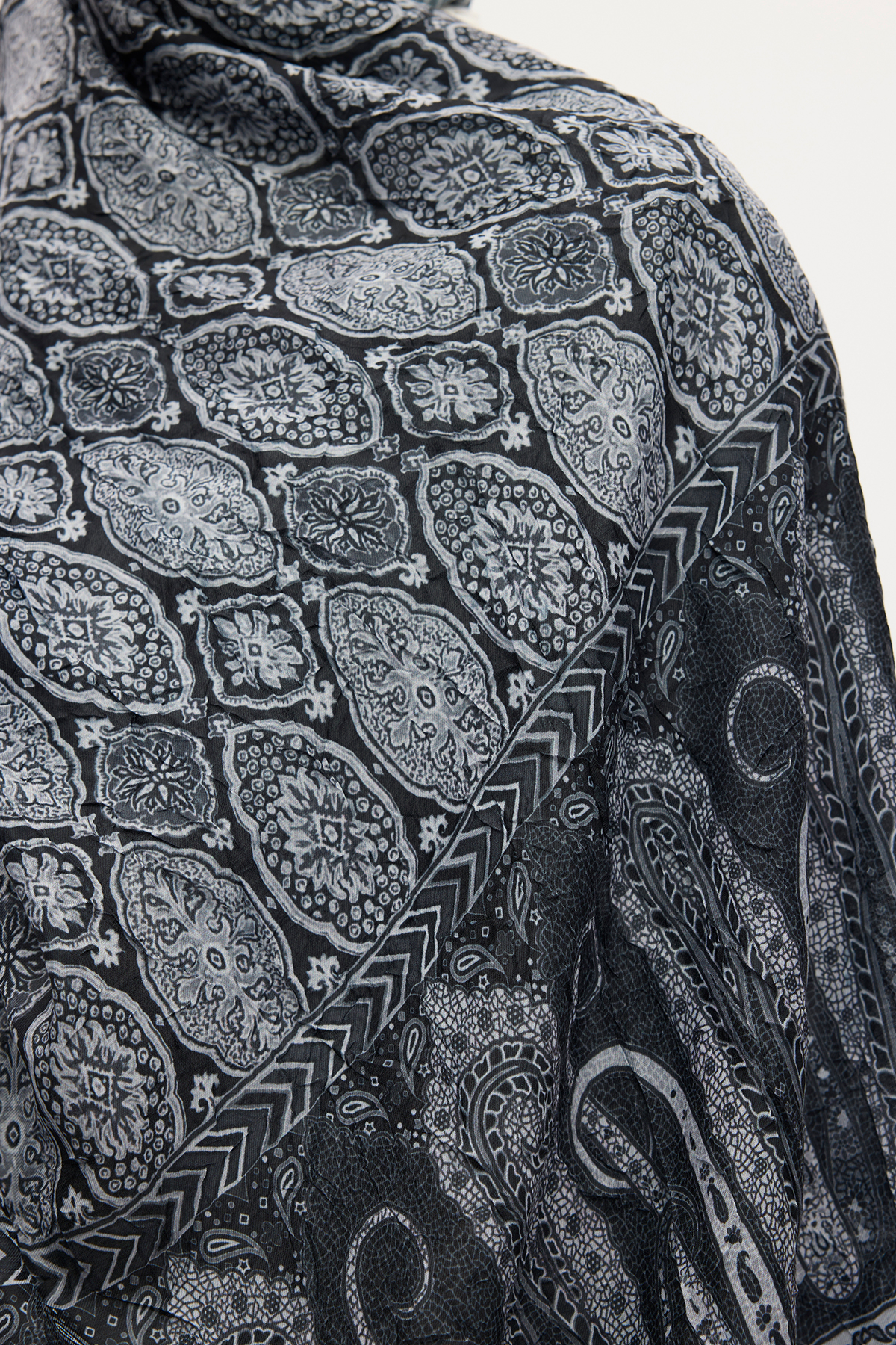 ETHNİC CRASH ŞALile farkını öne çıkar. Vintage görünümüyle, etnik desenlerini ön planda tutan bu özel tasarım. Tarzınıza ütü istemeyen kraş rahatlığı sunar.