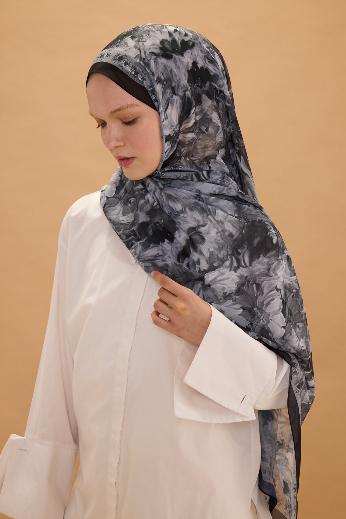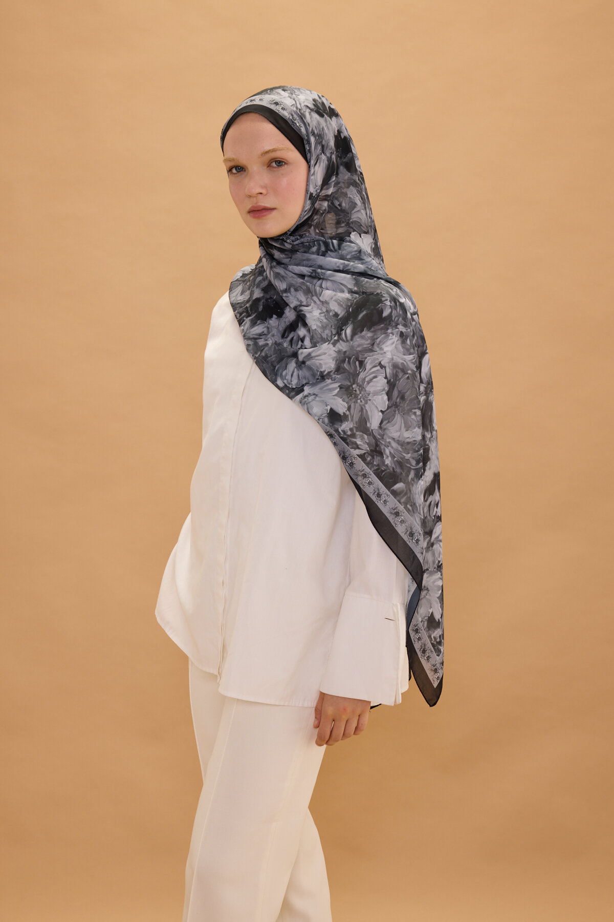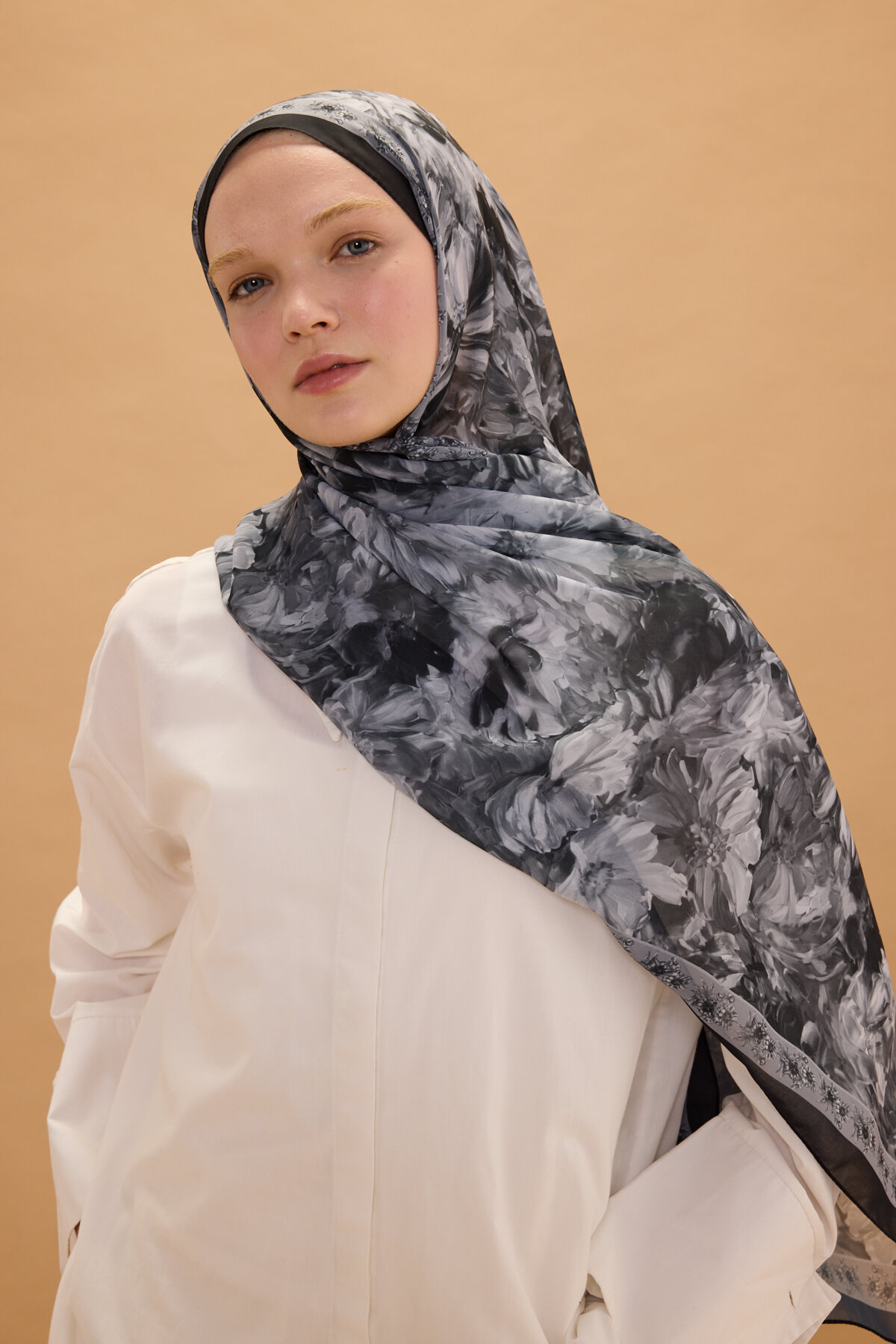 Frosted Bloom Müslin Şal - Siyah Gri - Camellia Scarfs Frosted Bloom Müslin Şal - Siyah Gri - Camellia Scarfs (1)