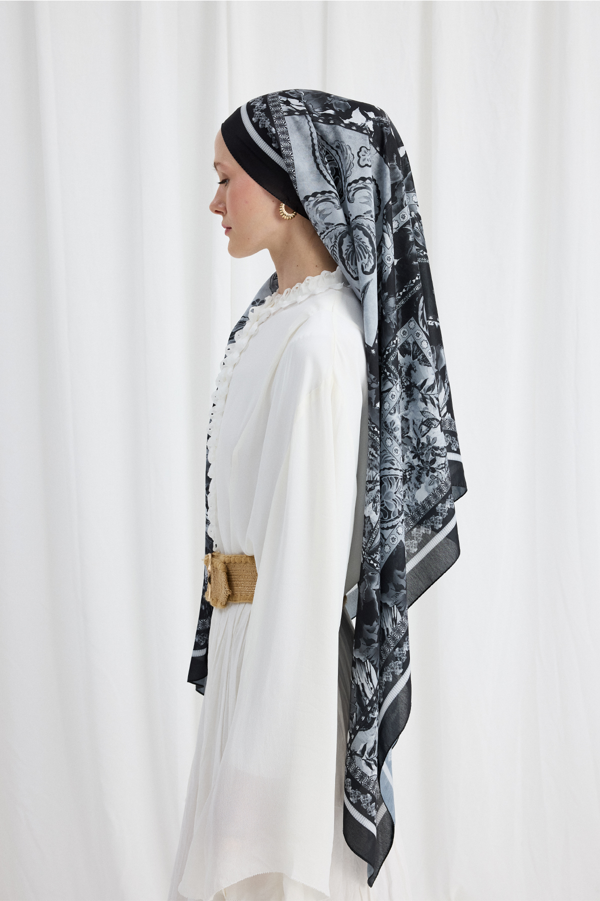 Elenora Müslin Şal - Siyah Bej - Camellia Scarfs Elenora Müslin Şal - Siyah Bej - Camellia Scarfs (1)