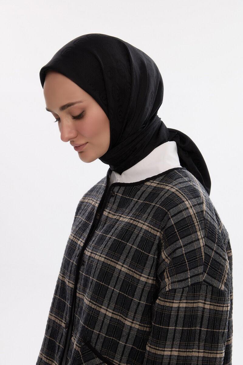 İpeksi Jakar Cs Desen Eşarp - Siyah renk hafif ve nefes alabilen yapısıyla yaz ve kış aylarında rahatlıkla kullanılabilen eşarplarımız, özel olarak üretilmiştir. Cildinize dost yumuşak dokusu sayesinde konforlu bir kullanım sunar.Kolay şekil alan ve gün içinde kayma yapmayan tasarımıyla stilinizi tamamlar. Ayrıca terletmeyen özelliğiyle her mevsimde ferah bir his sağlar.