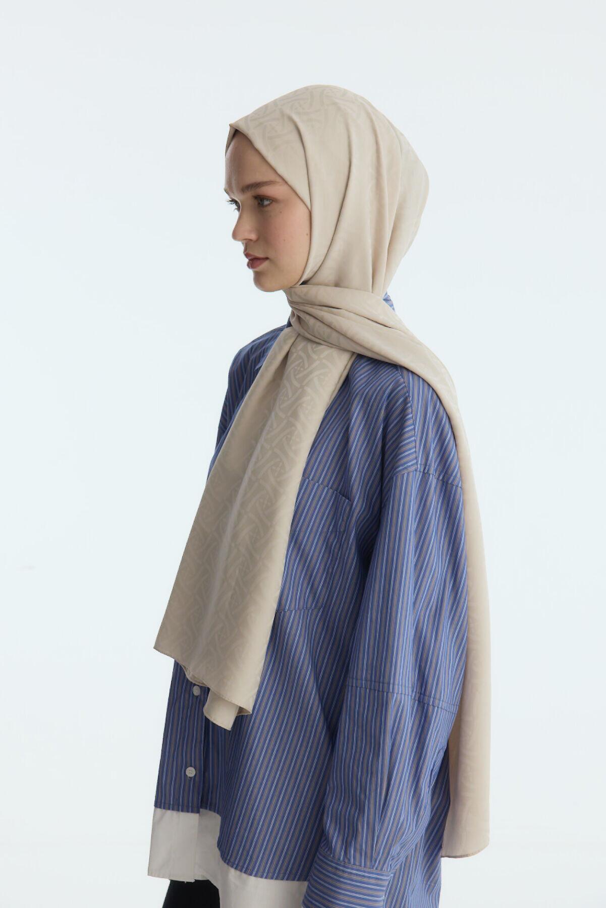 Camellia Scarf ile Asil Görünüm -İpeksi Jakar Elegant Desen Şal - Badem Sütü şal, zarif jakar dokusu ve doğal yapısıyla her kıyafete uyum sağlar. Yumuşak ve nefes alabilen kumaşı, size her mevsim rahatlık sunar.