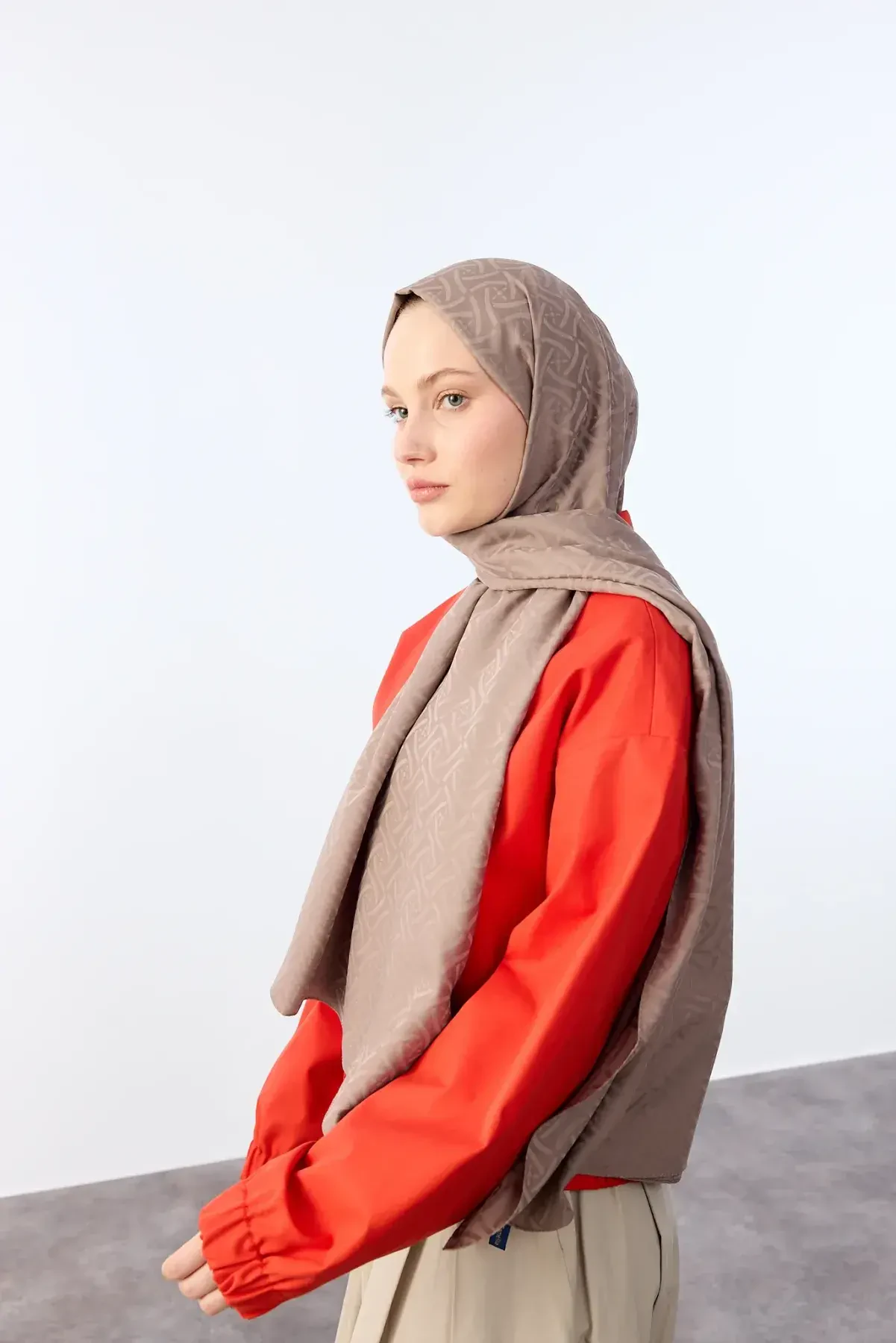 Camellia Scarf ile Asil Görünüm -İpeksi Jakar Elegant Desen Şal - Vizon şal, zarif jakar dokusu ve doğal yapısıyla her kıyafete uyum sağlar. Yumuşak ve nefes alabilen kumaşı, size her mevsim rahatlık sunar.