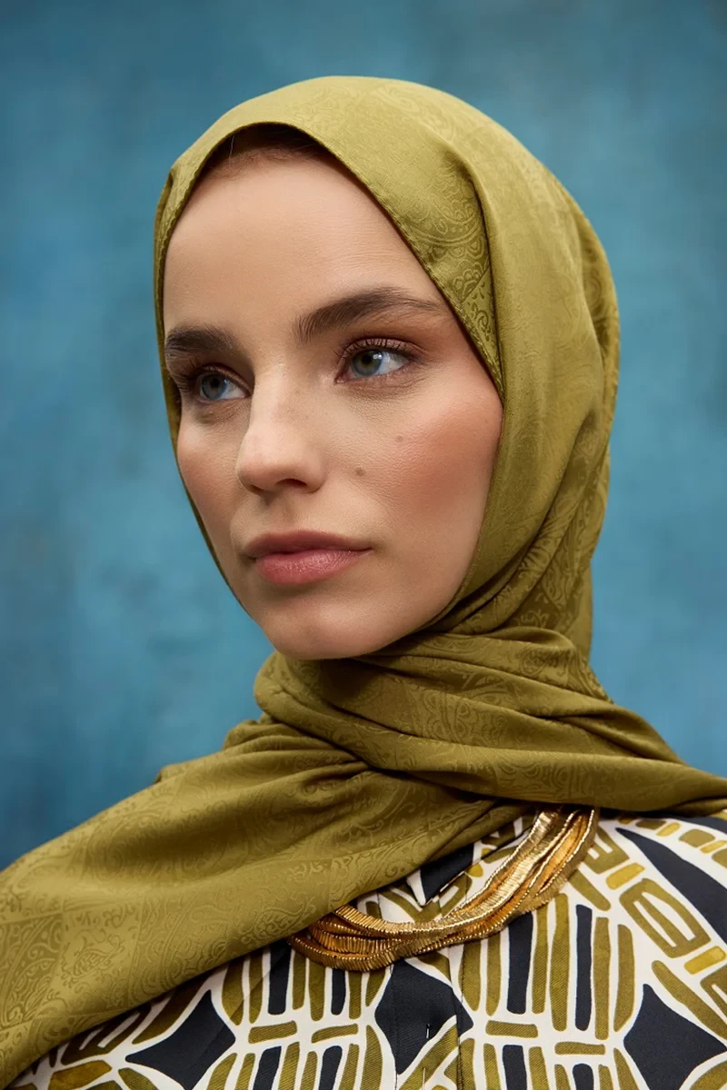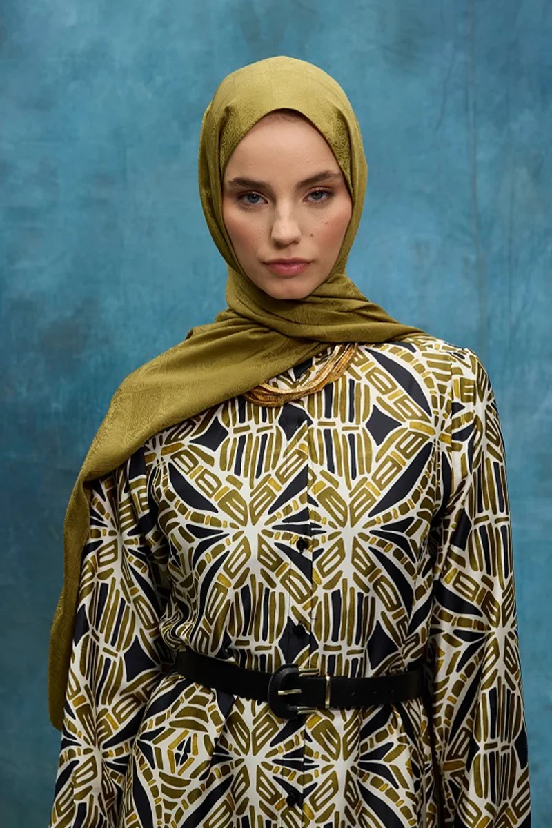 İpeksi Jakar Etnik Desen Şal - Yağ Yeşili