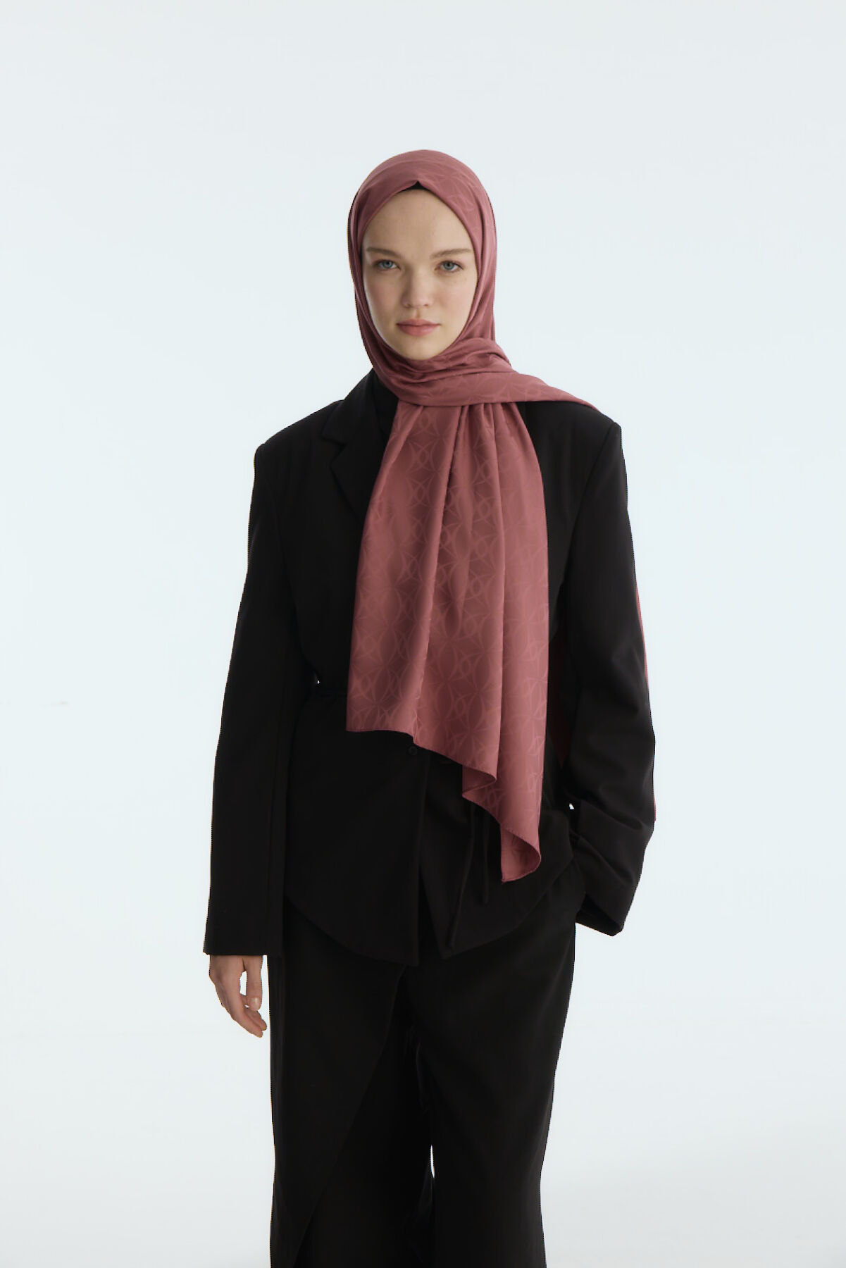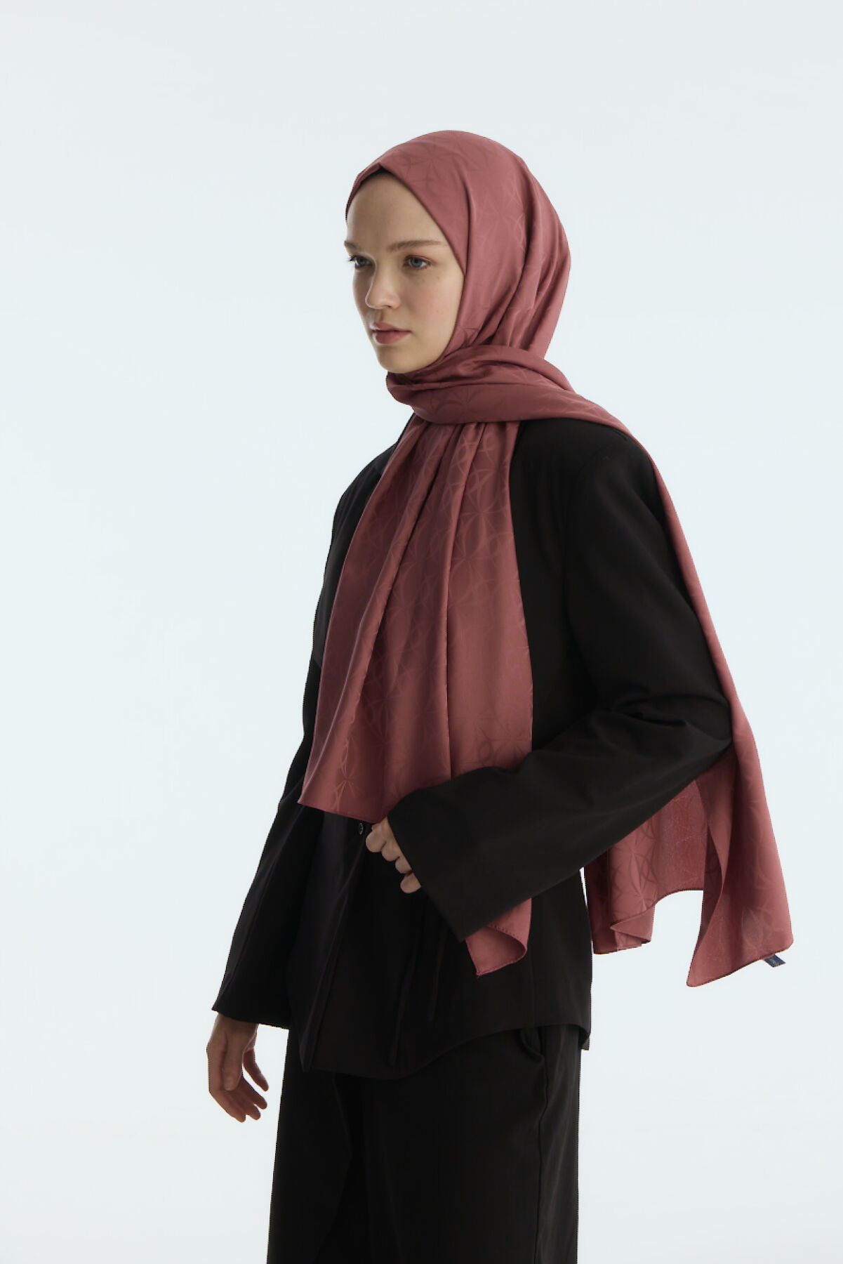 Camellia Scarf ile Asil Görünüm -İpeksi Jakar Geometrik Desen Şal - Gül şal, zarif jakar dokusu ve doğal yapısıyla her kıyafete uyum sağlar. Yumuşak ve nefes alabilen kumaşı, size her mevsim rahatlık sunar.