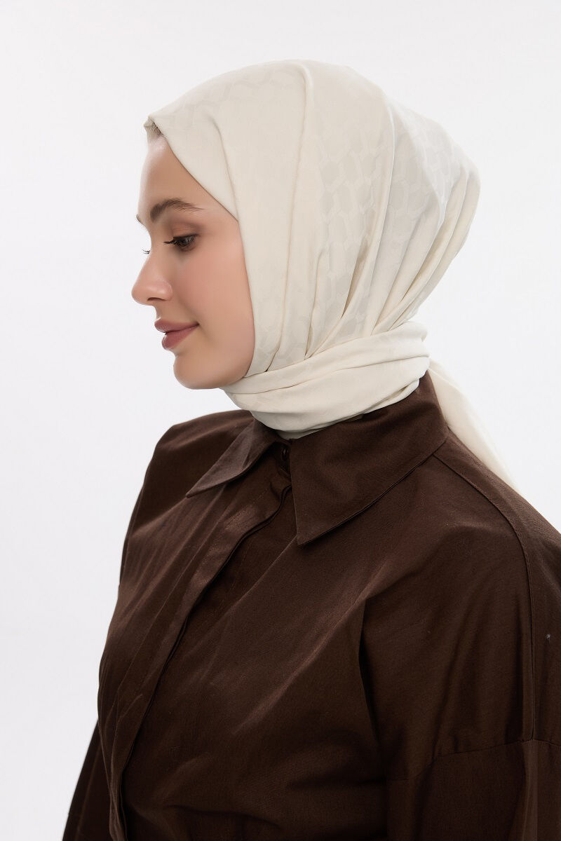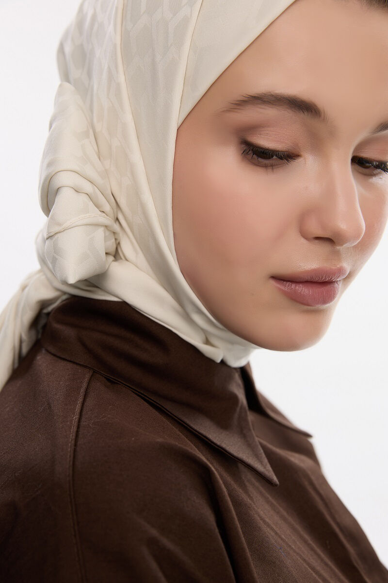 Camellia Scarf ile Asil Görünüm -İpeksi Jakar Koza Desen Şal - Badem Sütü şal, zarif jakar dokusu ve doğal yapısıyla her kıyafete uyum sağlar. Yumuşak ve nefes alabilen kumaşı, size her mevsim rahatlık sunar.