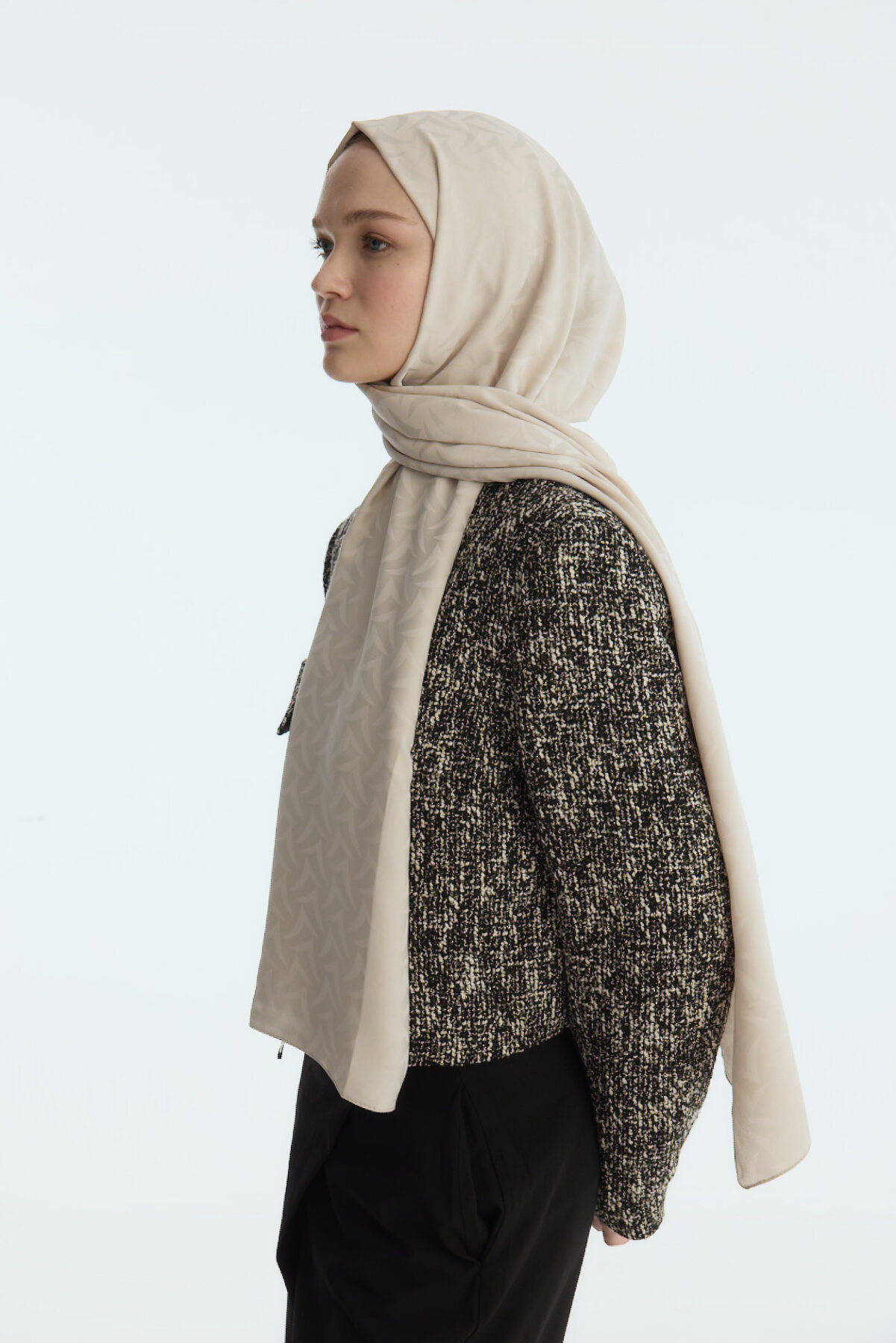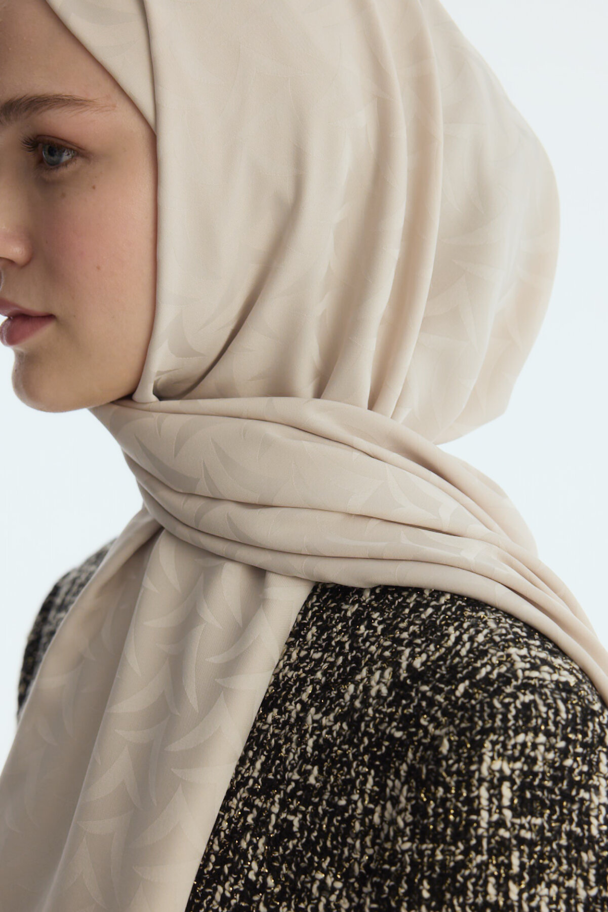İpeksi Jakar Nora Desen Şal - Badem Sütü