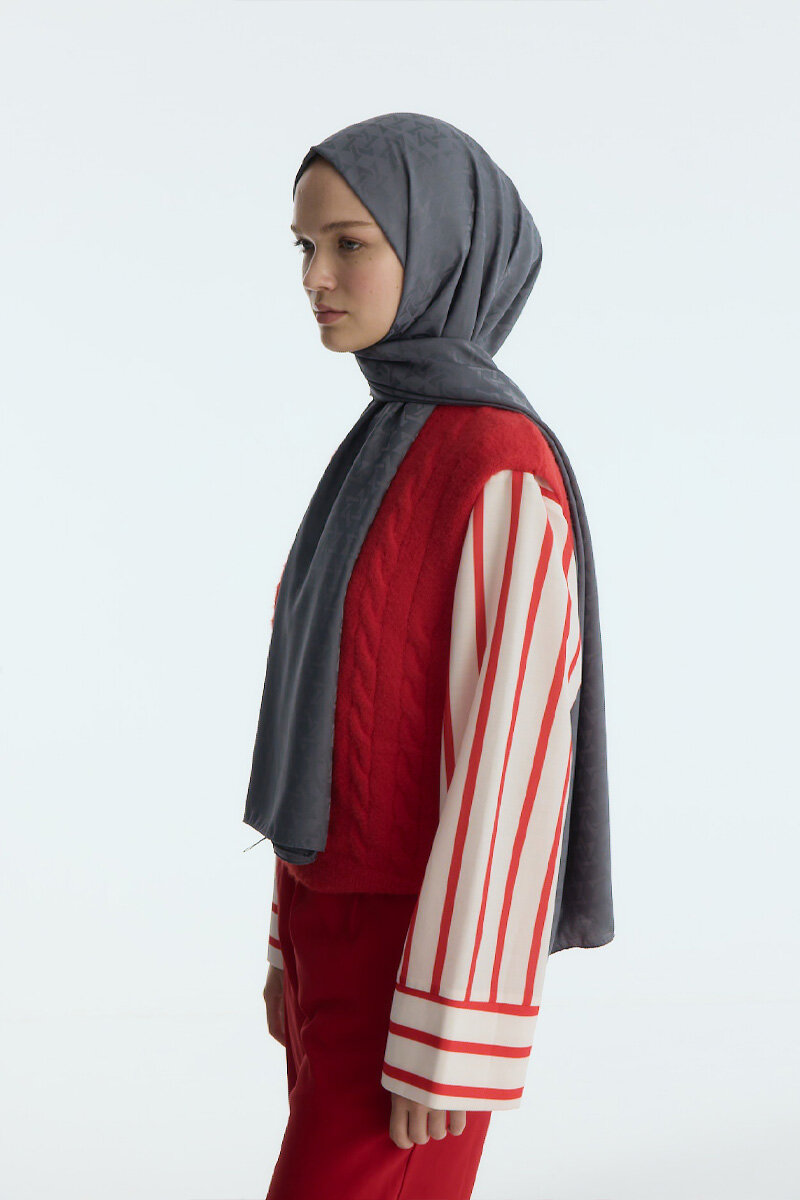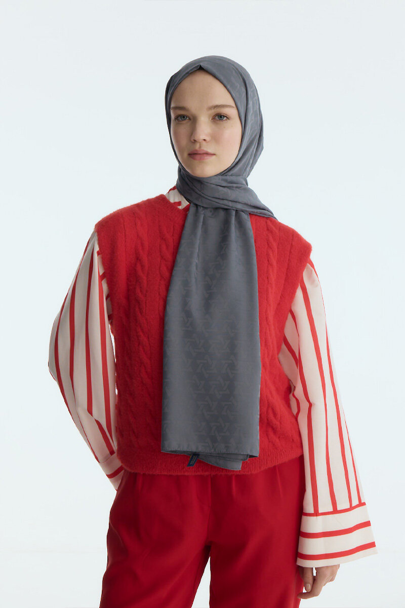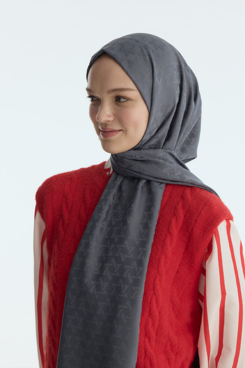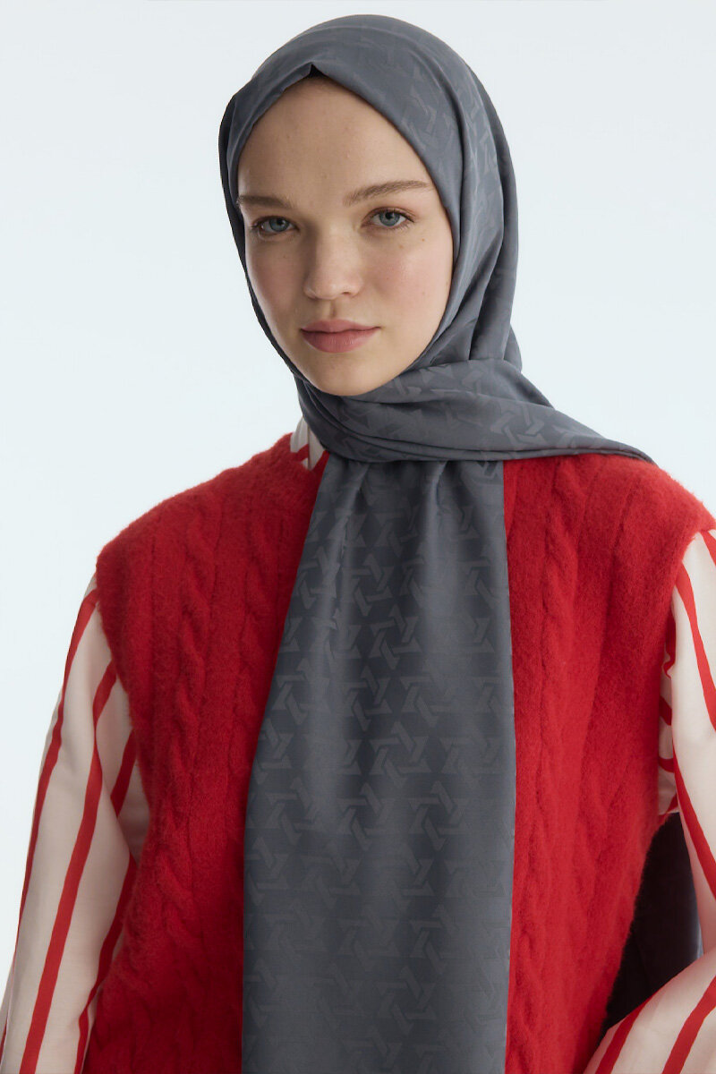 İpeksi Jakar Piramit Desen Şal - Gümüş Gri