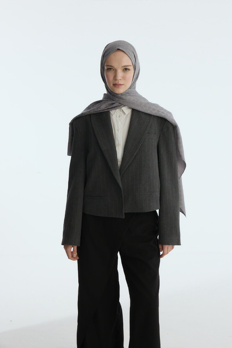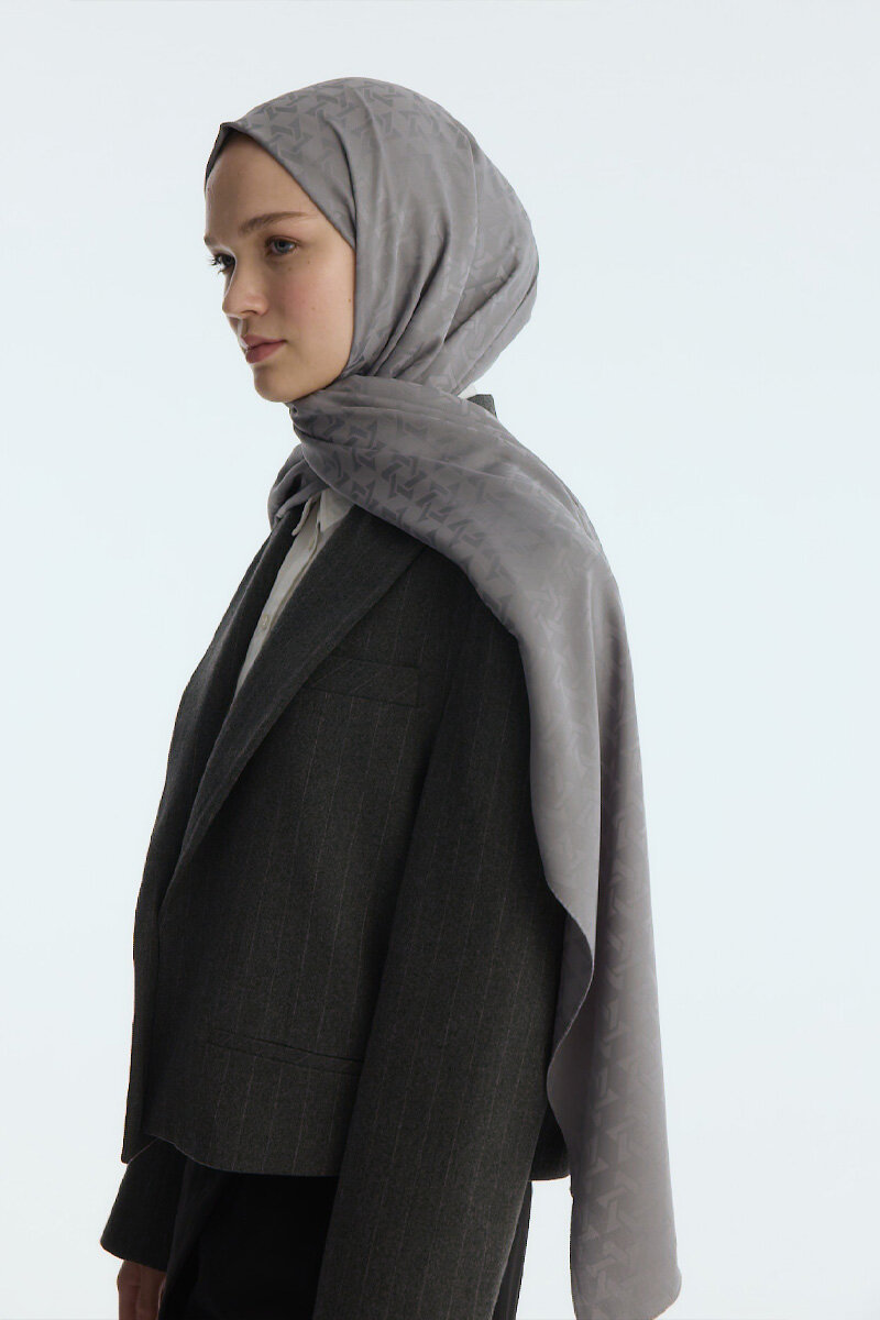 İpeksi Jakar Piramit Desen Şal - Gümüş Gri