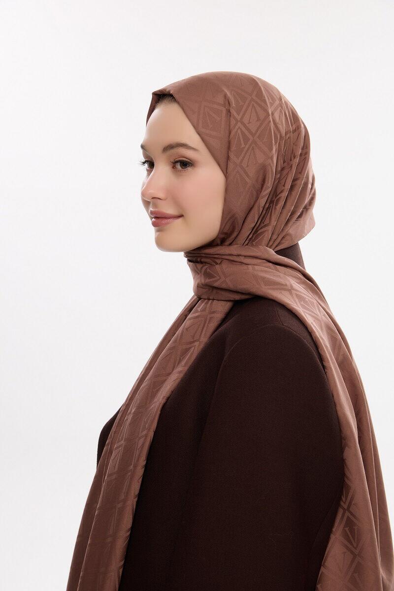 Camellia Scarf ile Asil Görünüm -İpeksi Jakar V Desen Şal - Açık Kahve şal, zarif jakar dokusu ve doğal yapısıyla her kıyafete uyum sağlar. Yumuşak ve nefes alabilen kumaşı, size her mevsim rahatlık sunar.