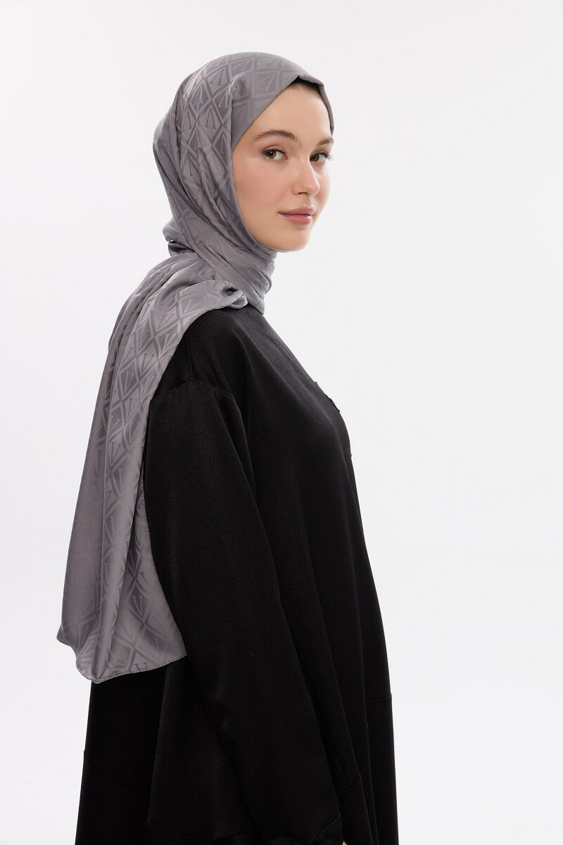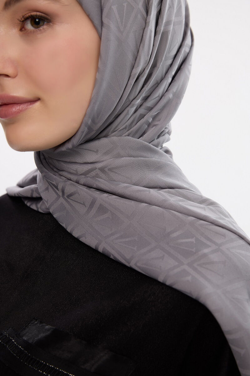 Camellia Scarf ile Asil Görünüm -İpeksi Jakar V Desen Şal - Füme şal, zarif jakar dokusu ve doğal yapısıyla her kıyafete uyum sağlar. Yumuşak ve nefes alabilen kumaşı, size her mevsim rahatlık sunar.