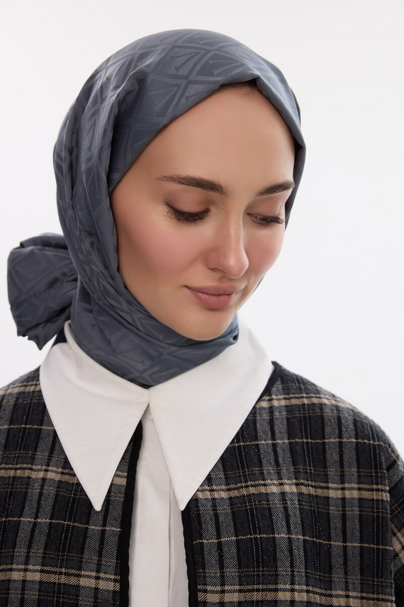 Camellia Scarf ile Asil Görünüm -İpeksi Jakar V Desen Şal - Koyu Gri şal, zarif jakar dokusu ve doğal yapısıyla her kıyafete uyum sağlar. Yumuşak ve nefes alabilen kumaşı, size her mevsim rahatlık sunar.