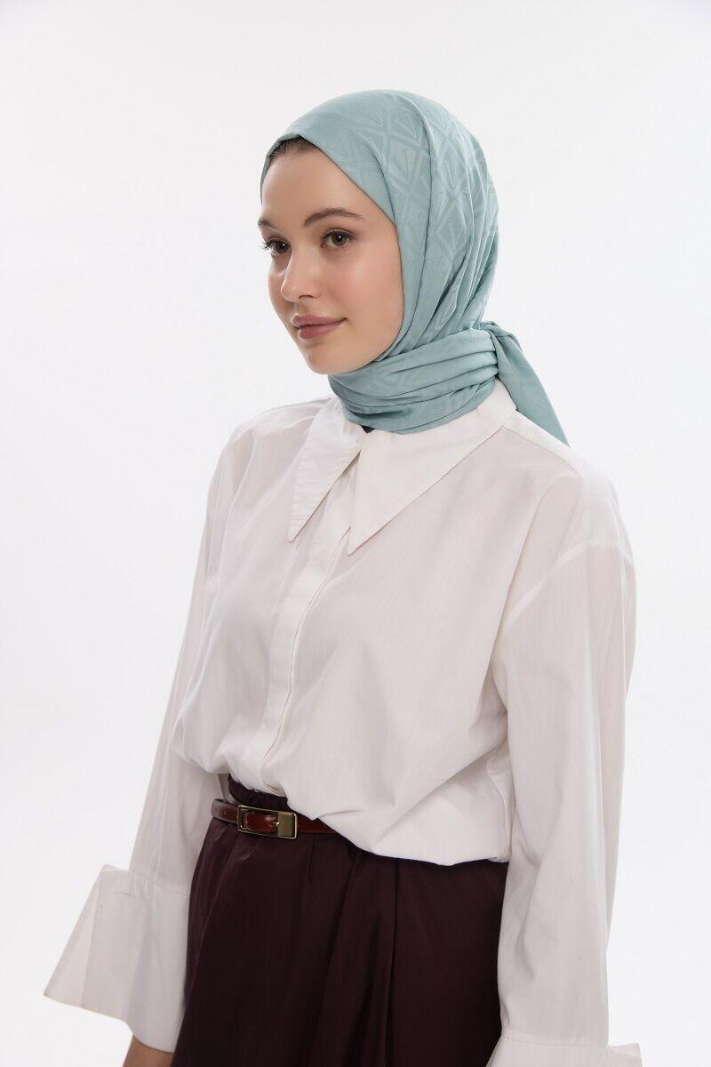 Camellia Scarf ile Asil Görünüm -İpeksi Jakar V Desen Şal - Nane şal, zarif jakar dokusu ve doğal yapısıyla her kıyafete uyum sağlar. Yumuşak ve nefes alabilen kumaşı, size her mevsim rahatlık sunar.