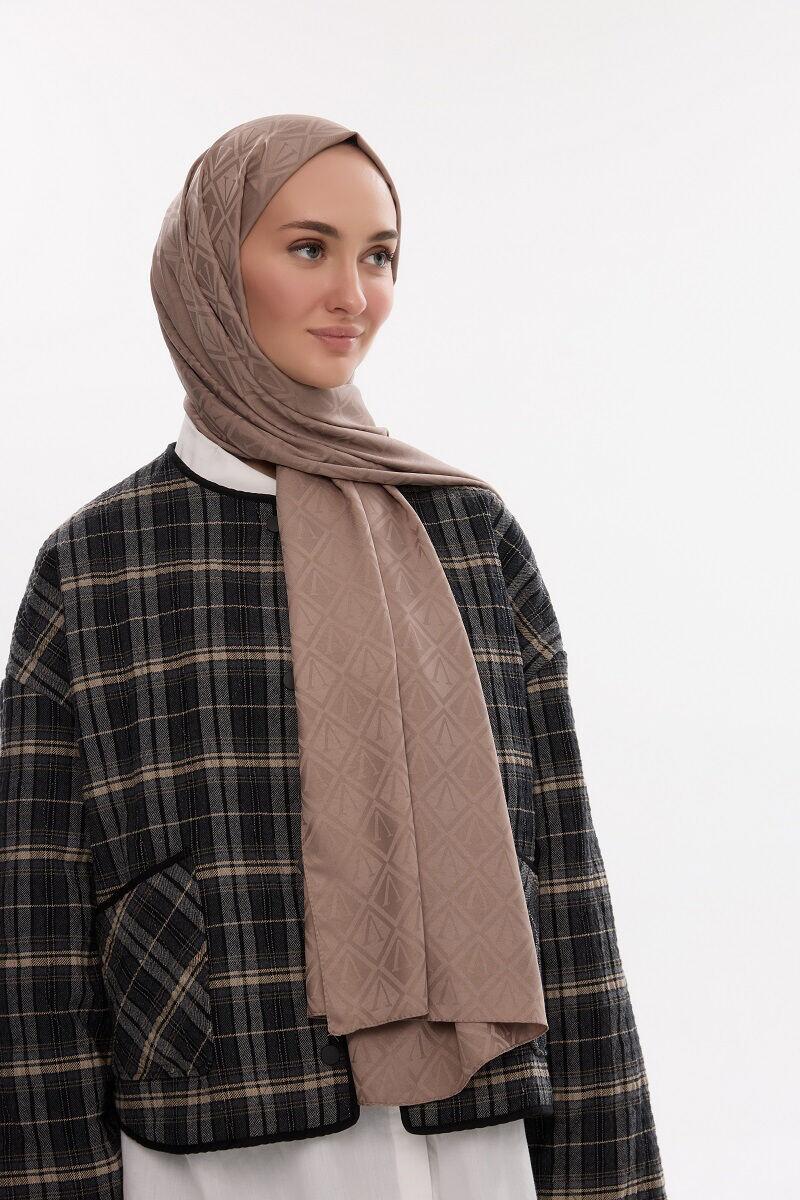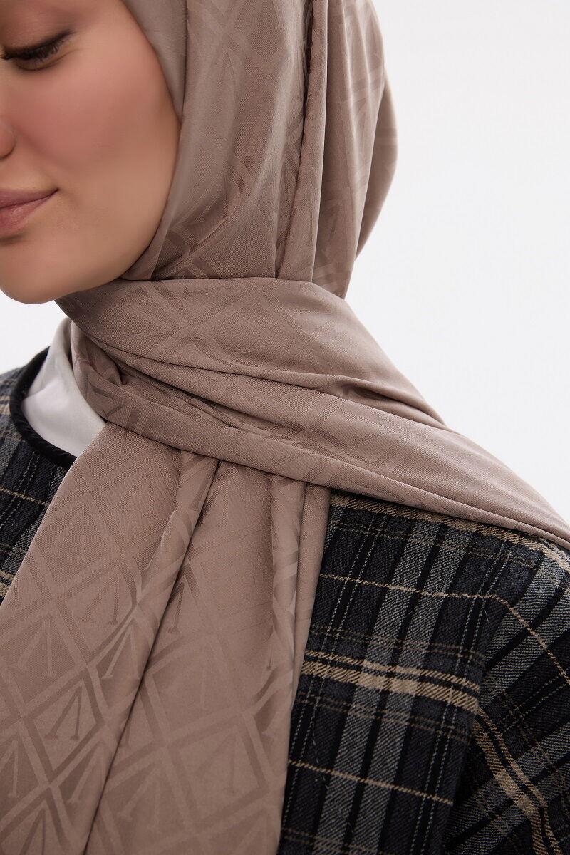 Camellia Scarf ile Asil Görünüm -İpeksi Jakar V Desen Şal - Vizon şal, zarif jakar dokusu ve doğal yapısıyla her kıyafete uyum sağlar. Yumuşak ve nefes alabilen kumaşı, size her mevsim rahatlık sunar.