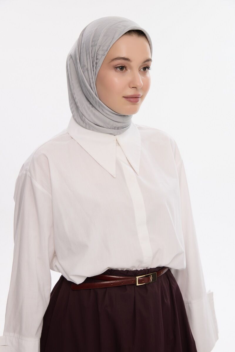 İpeksi Jakar Zikzak Desen Eşarp - Gümüş Gri renk hafif ve nefes alabilen yapısıyla yaz ve kış aylarında rahatlıkla kullanılabilen eşarplarımız, özel olarak üretilmiştir. Cildinize dost yumuşak dokusu sayesinde konforlu bir kullanım sunar.Kolay şekil alan ve gün içinde kayma yapmayan tasarımıyla stilinizi tamamlar. Ayrıca terletmeyen özelliğiyle her mevsimde ferah bir his sağlar.