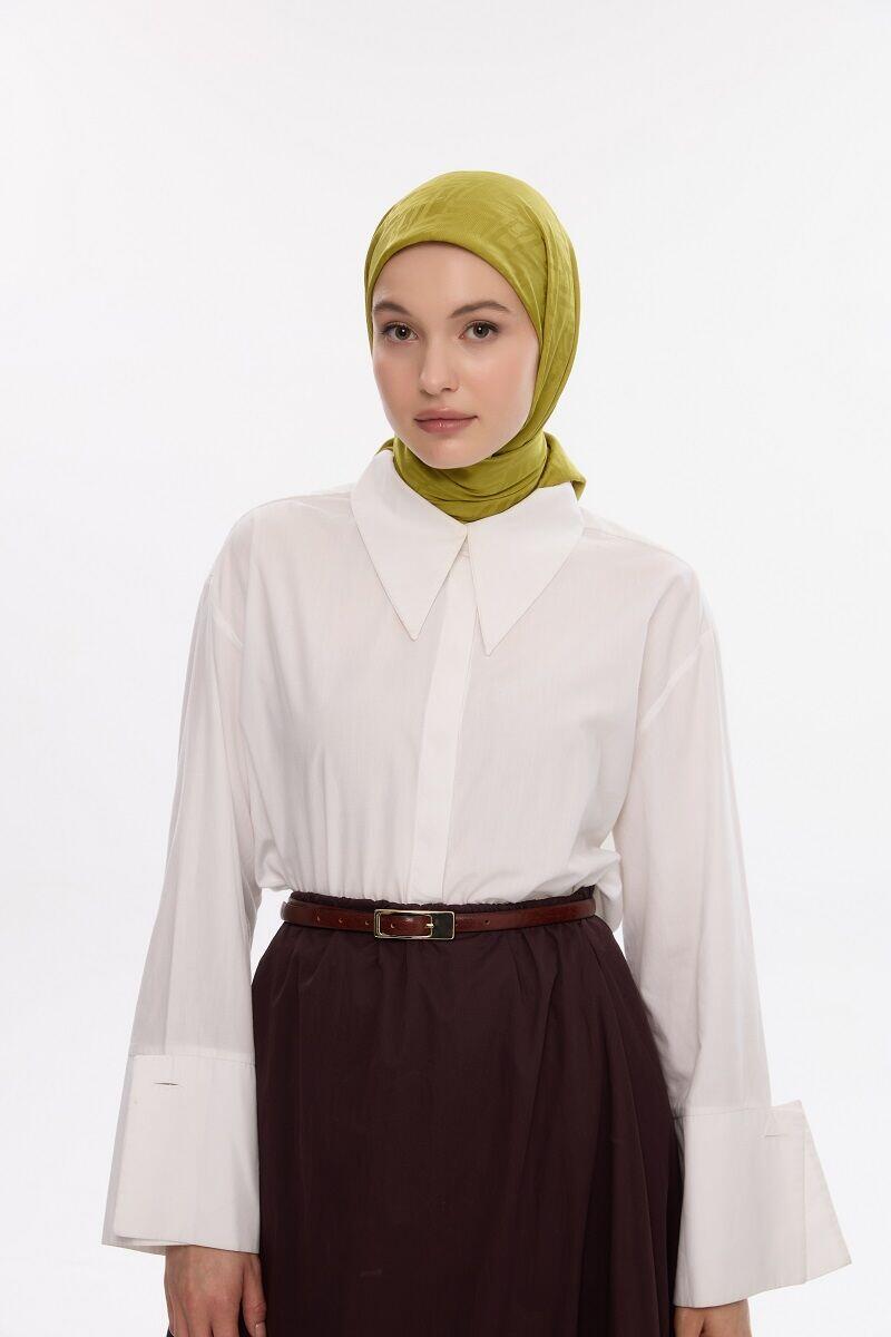 İpeksi Jakar Zikzak Desen Eşarp - Yağ Yeşilli renk hafif ve nefes alabilen yapısıyla yaz ve kış aylarında rahatlıkla kullanılabilen eşarplarımız, özel olarak üretilmiştir. Cildinize dost yumuşak dokusu sayesinde konforlu bir kullanım sunar.Kolay şekil alan ve gün içinde kayma yapmayan tasarımıyla stilinizi tamamlar. Ayrıca terletmeyen özelliğiyle her mevsimde ferah bir his sağlar.