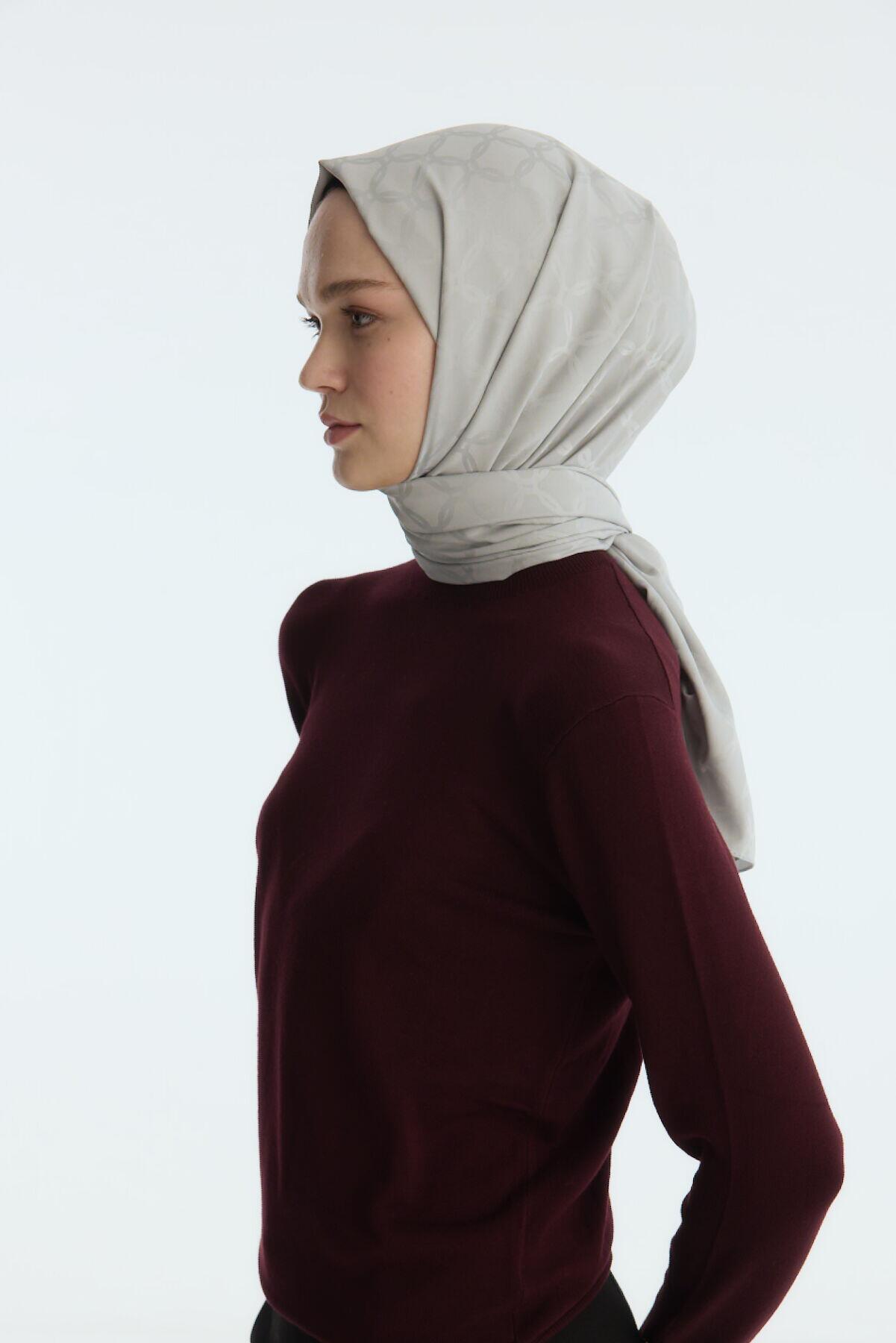 Camellia Scarf ile Asil Görünüm -İpeksi Jakar Zincir Desen Şal - Gümüş Gri şal, zarif jakar dokusu ve doğal yapısıyla her kıyafete uyum sağlar. Yumuşak ve nefes alabilen kumaşı, size her mevsim rahatlık sunar.