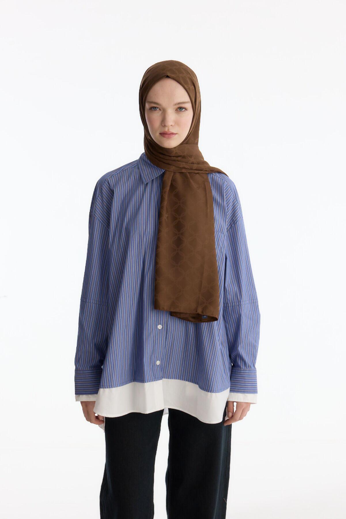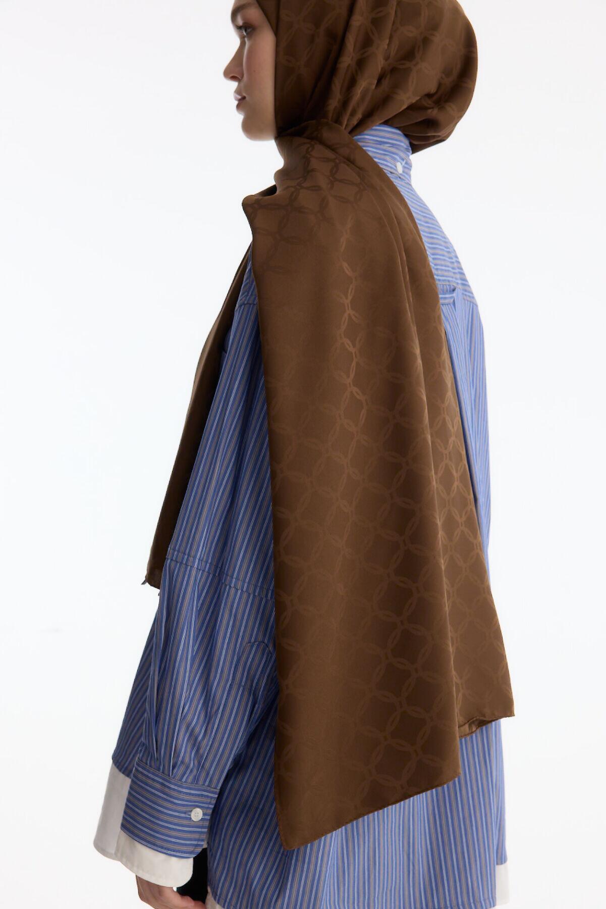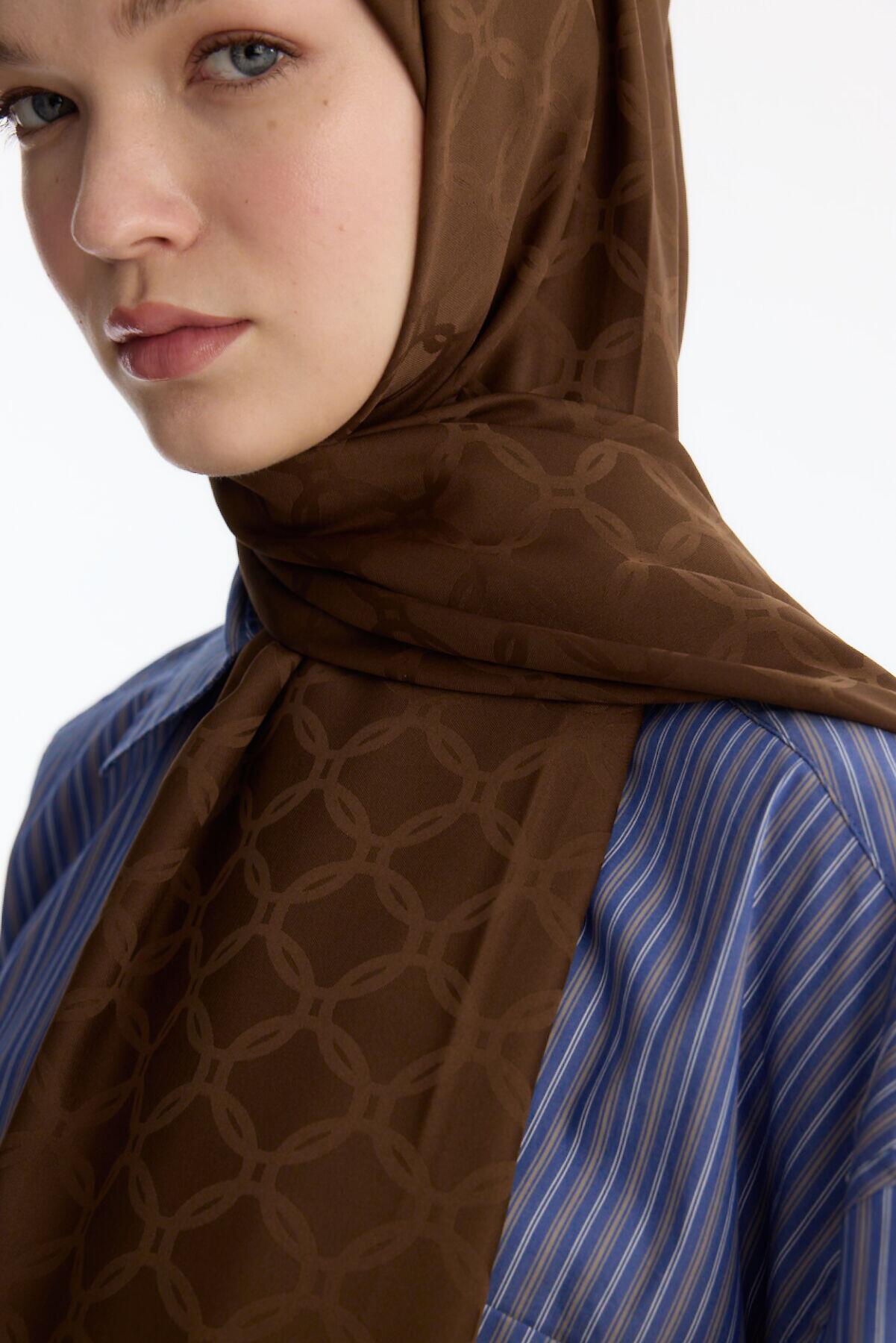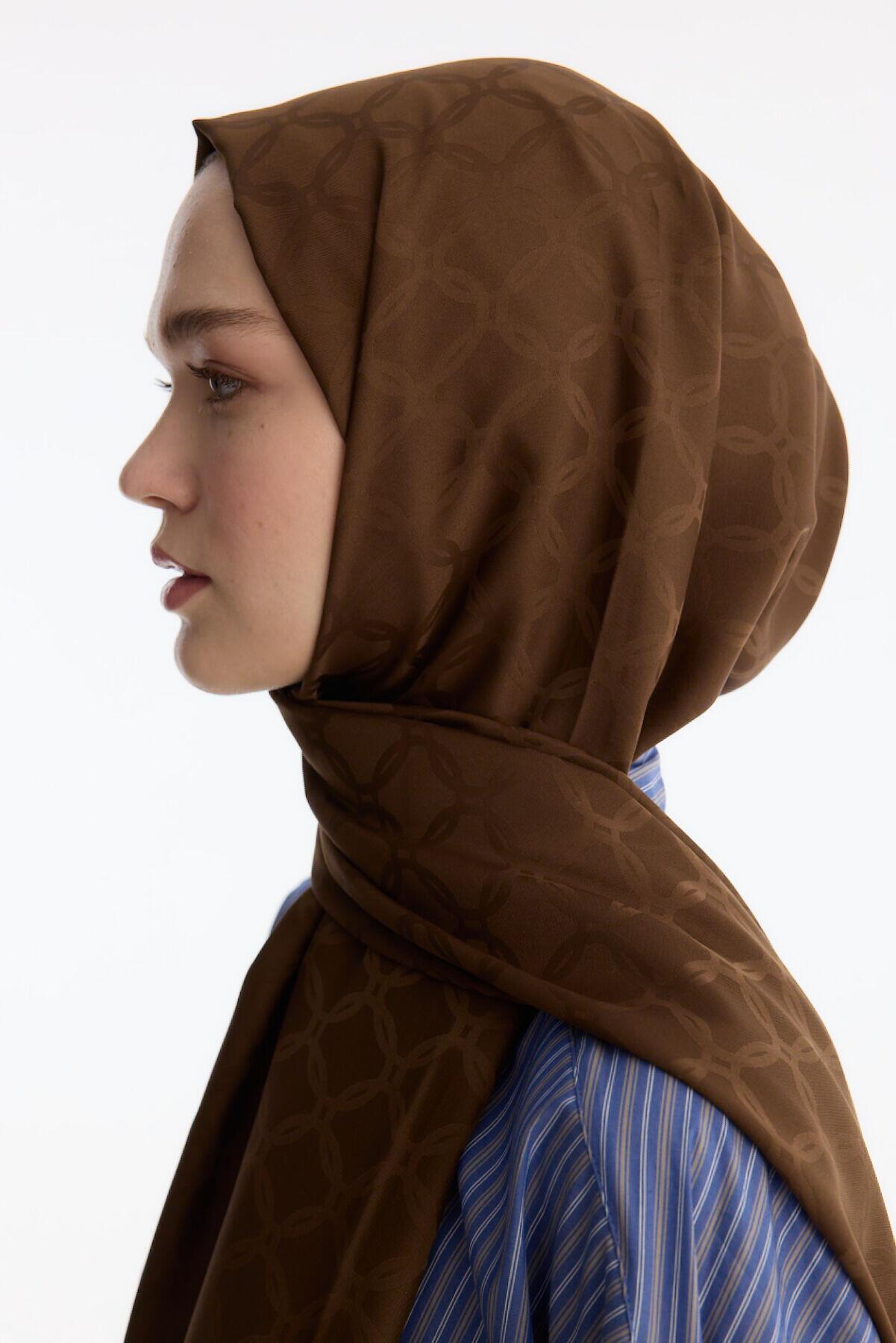Camellia Scarf ile Asil Görünüm -İpeksi Jakar Zincir Desen Şal - Kahve şal, zarif jakar dokusu ve doğal yapısıyla her kıyafete uyum sağlar. Yumuşak ve nefes alabilen kumaşı, size her mevsim rahatlık sunar.