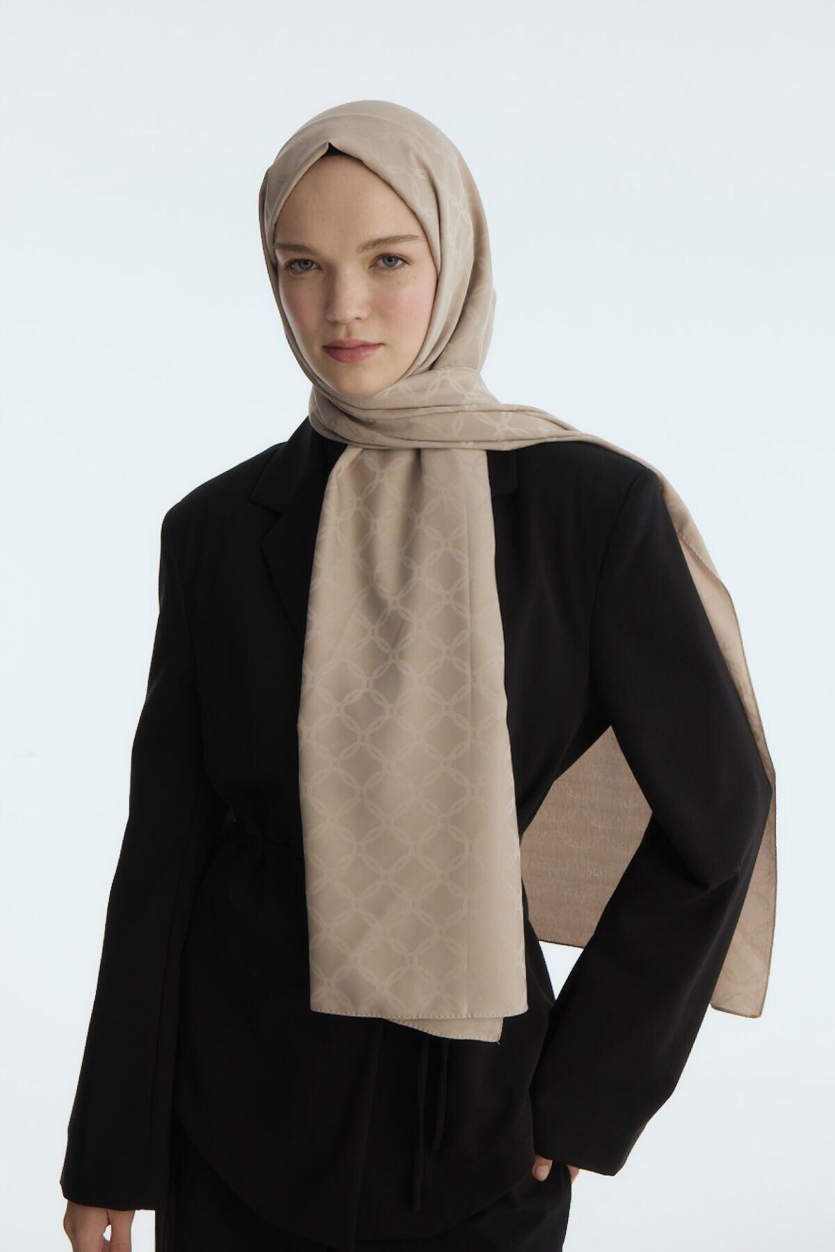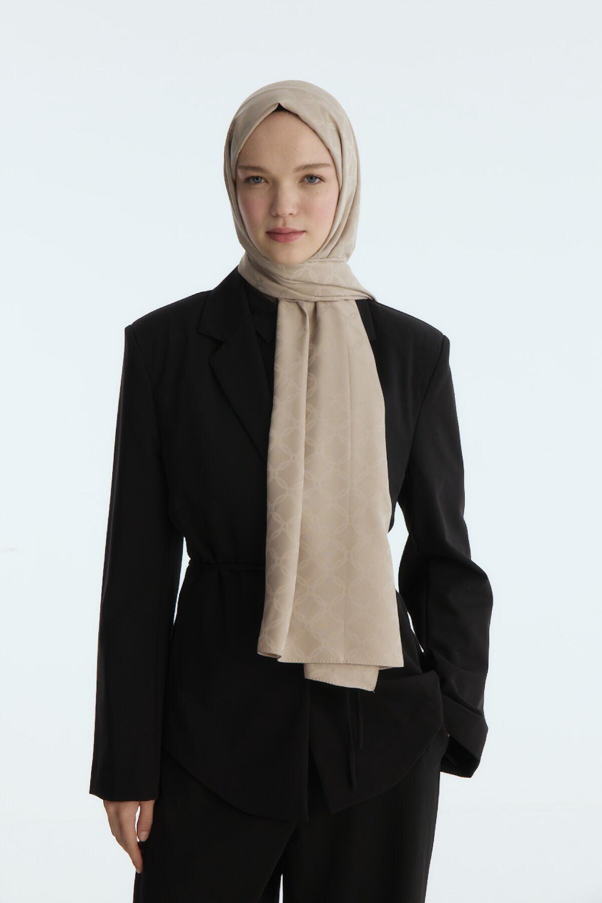 Camellia Scarf ile Asil Görünüm -İpeksi Jakar Zincir Desen Şal - Kum şal, zarif jakar dokusu ve doğal yapısıyla her kıyafete uyum sağlar. Yumuşak ve nefes alabilen kumaşı, size her mevsim rahatlık sunar.