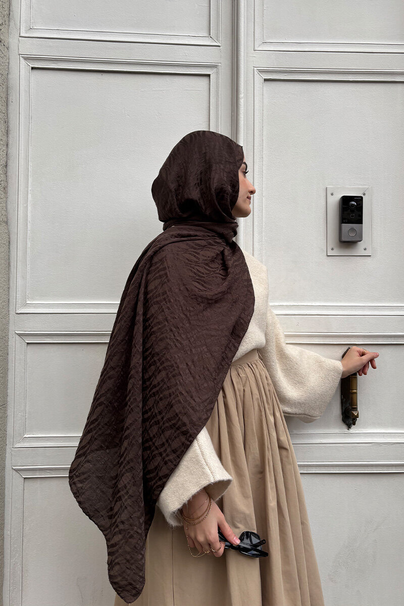 İtalyan Jakar Şal Dalga Desen - Acı Kahve - Camellia Scarfs İtalyan Jakar Şal Dalga Desen - Acı Kahve - Camellia Scarfs (1)