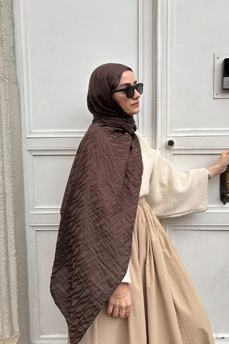 İtalyan Jakar Şal Dalga Desen - Kahve - Camellia Scarfs İtalyan Jakar Şal Dalga Desen - Kahve - Camellia Scarfs (1)