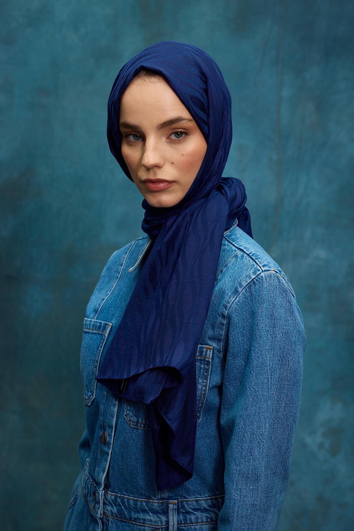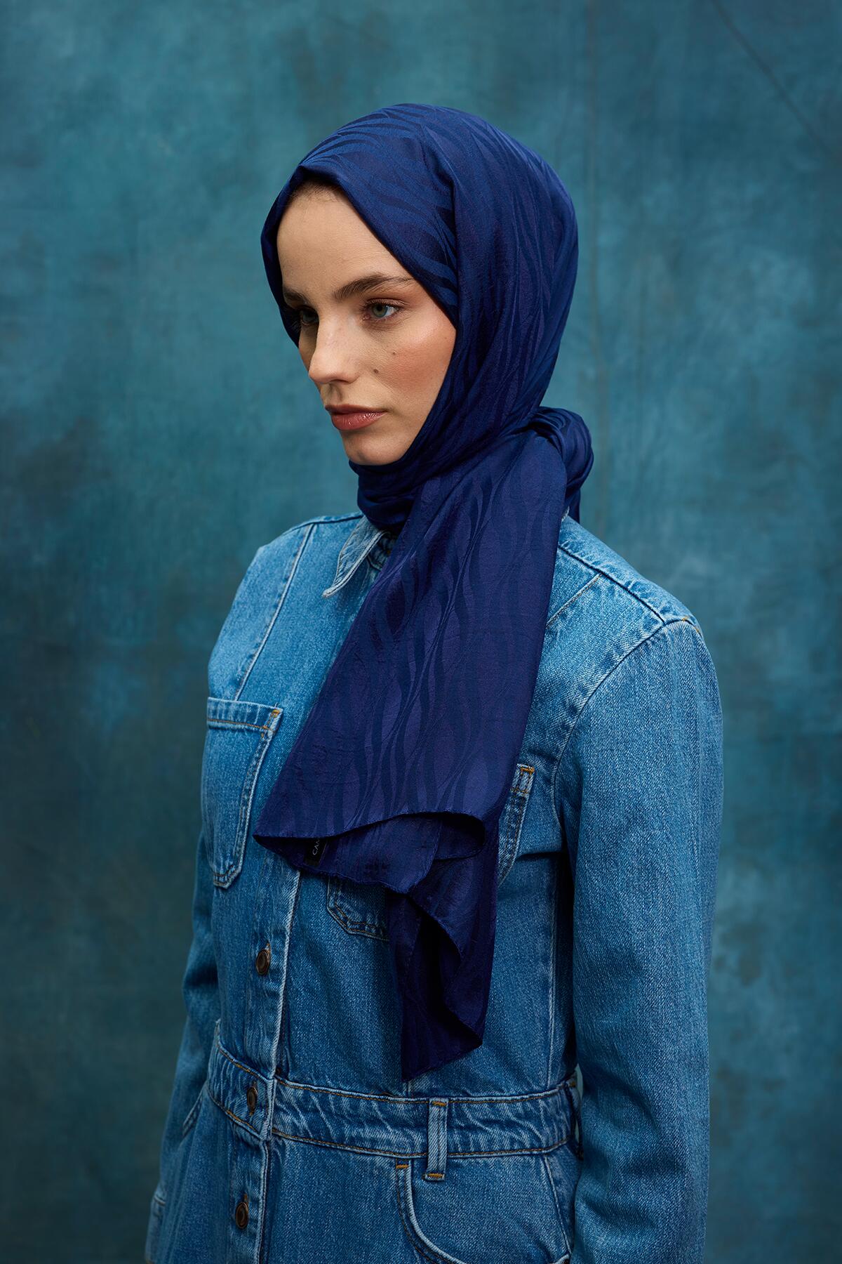 İtalyan Jakar Şal Dalga Desen - Gece Mavisi