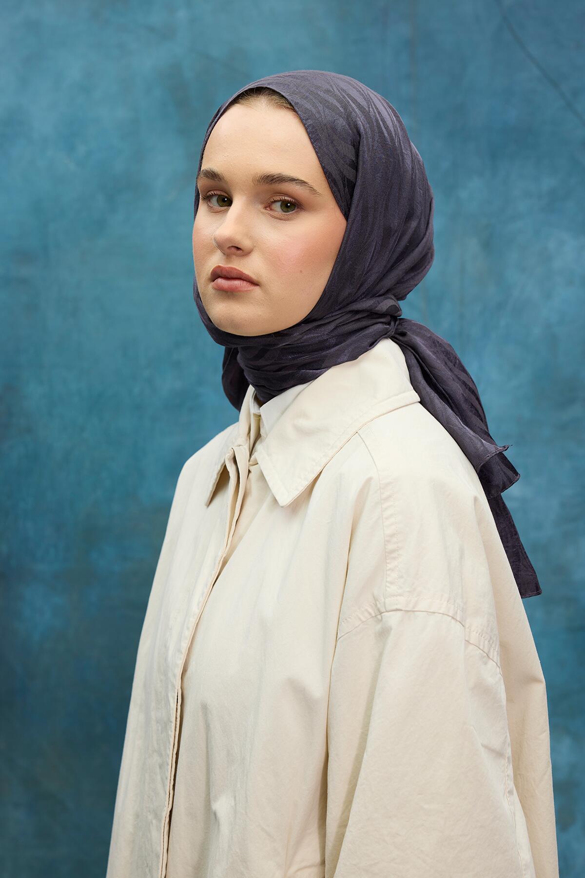 Elenora Müslin Şal - Lacivert Gri - Camellia Scarfs Elenora Müslin Şal - Lacivert Gri - Camellia Scarfs (1)