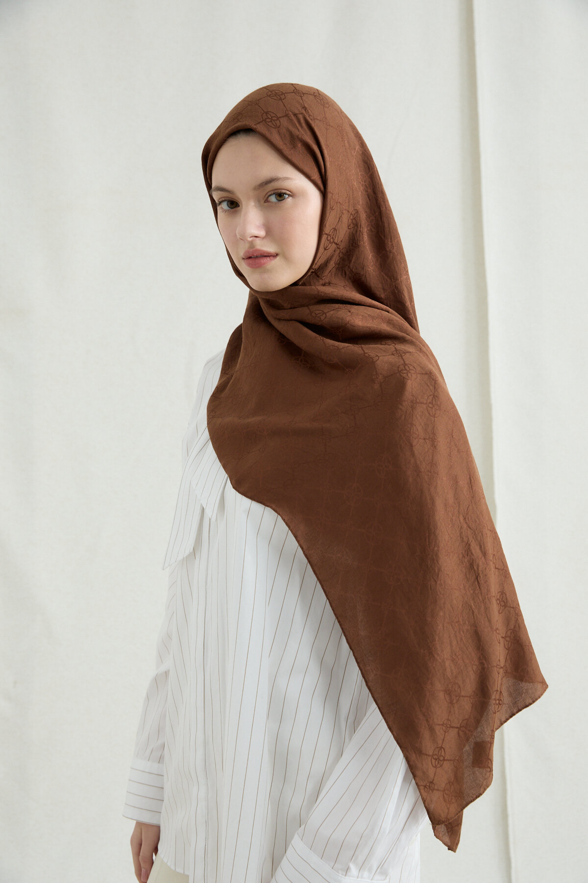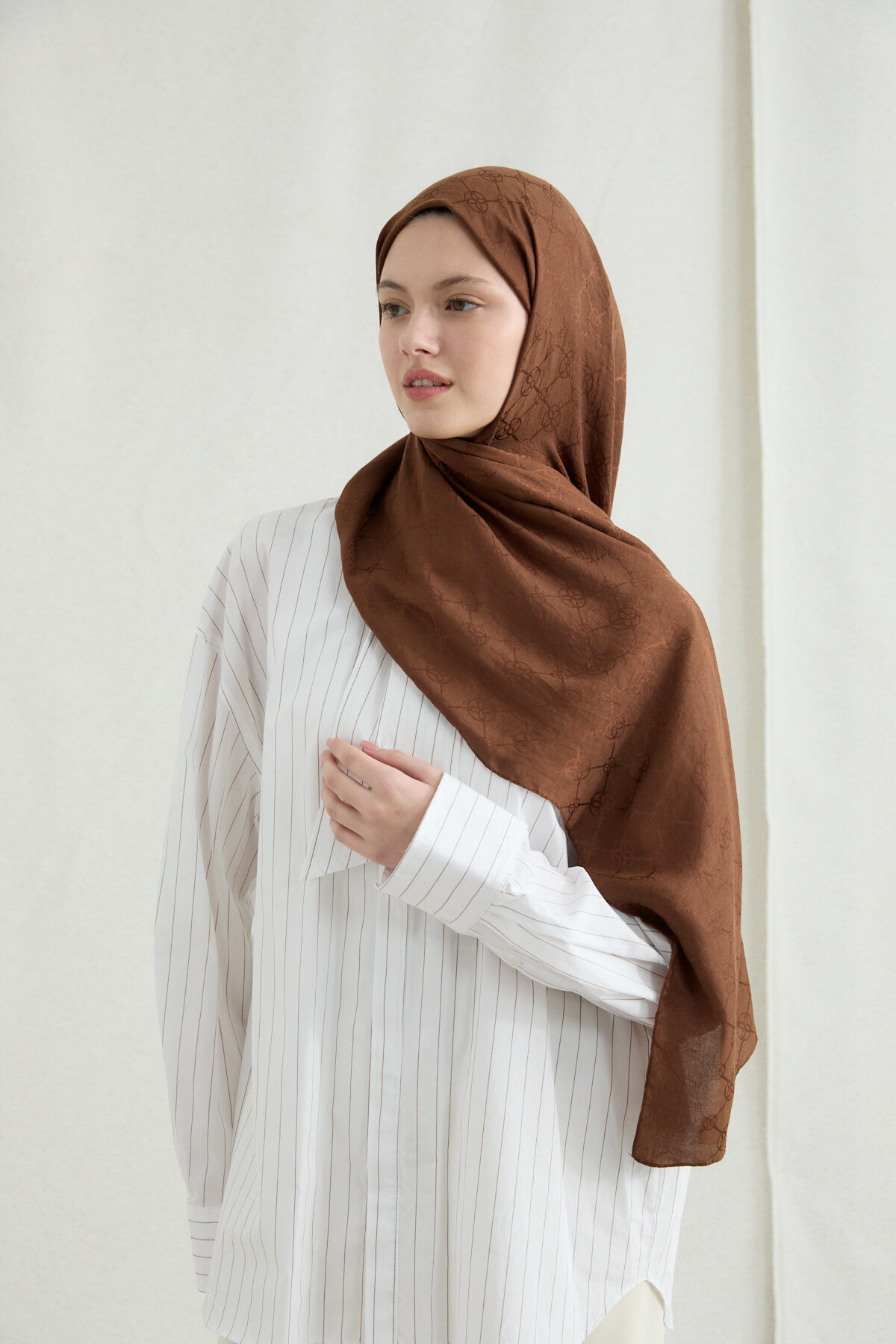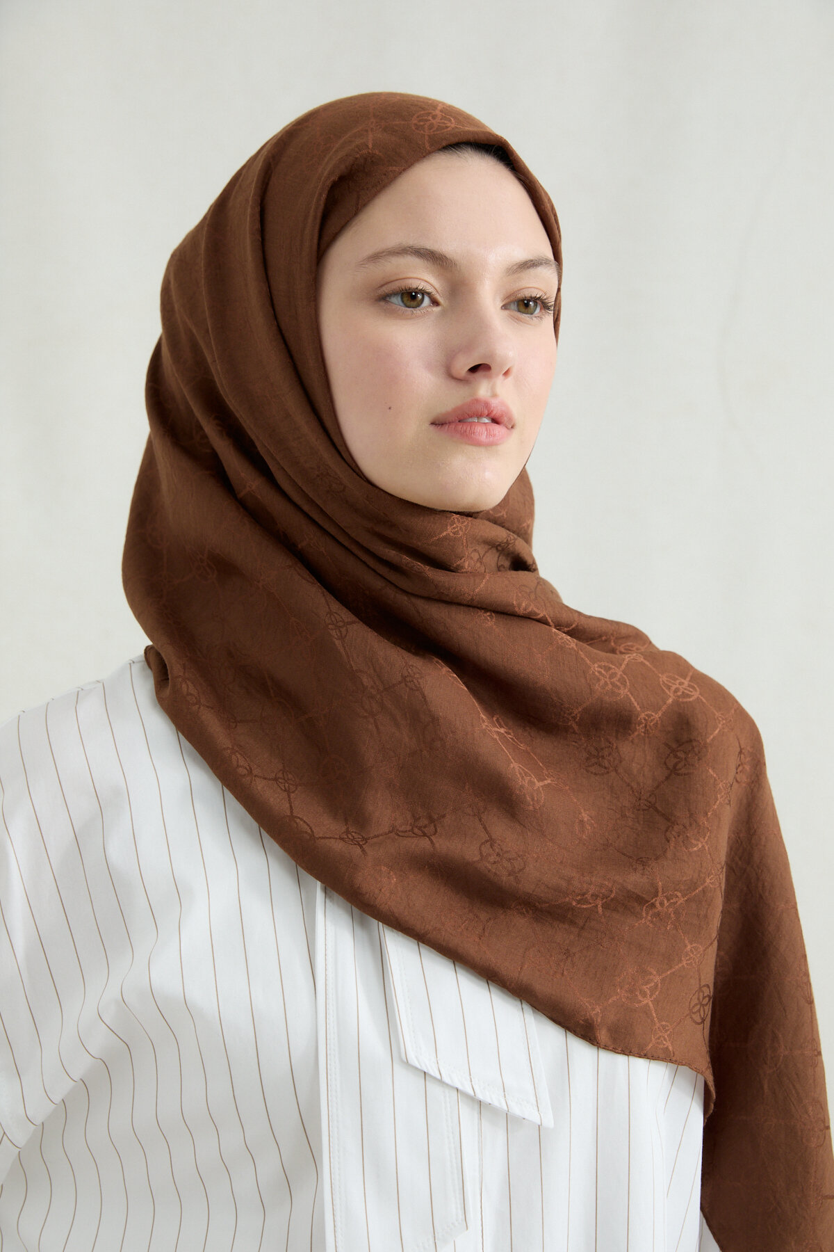 İtalyan Jakar Şal Monogram Desen - Acı Kahve - Camellia Scarfs İtalyan Jakar Şal Monogram Desen - Acı Kahve - Camellia Scarfs (1)