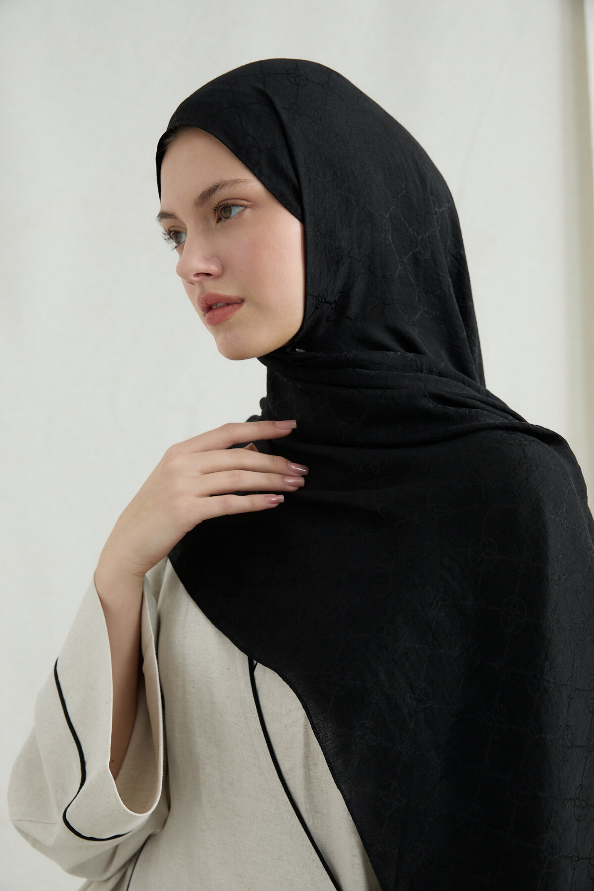 İtalyan Jakar Şal Monogram Desen - Siyah