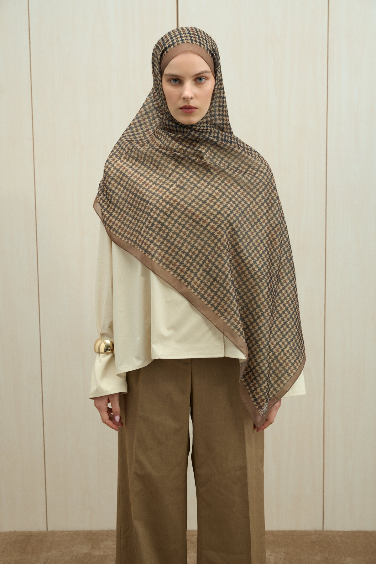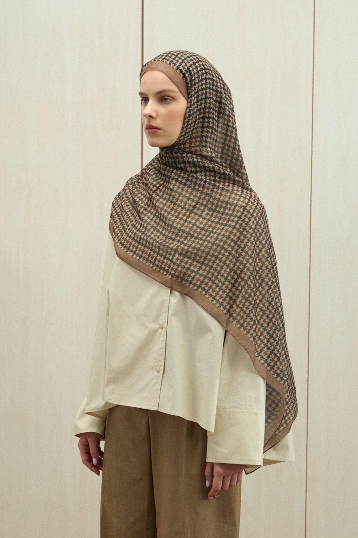 Kazayağı Soft Pamuk Şal, Haki renginin estetiğini ve Soft Pamuk kumaşın doğal, mat dokusunu mükemmel bir dengede buluşturuyor. Viskon ve Soft Pamuk karışımının sunduğu hafiflik sayesinde gün boyu konforlu bir kullanım sağlayan bu parça, her bağlama stilinde zarif ve tok duruşunu korur. Hem günlük şıklığınızda hem de klasik kombinlerinizde zahmetsiz bir zarafet yakalamanız için tasarlanmıştır.