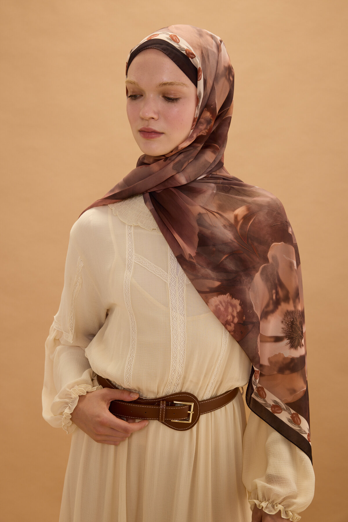 Blom Desen Soft Şal - Kahve - Camellia Scarfs Blom Desen Soft Şal - Kahve - Camellia Scarfs (1)